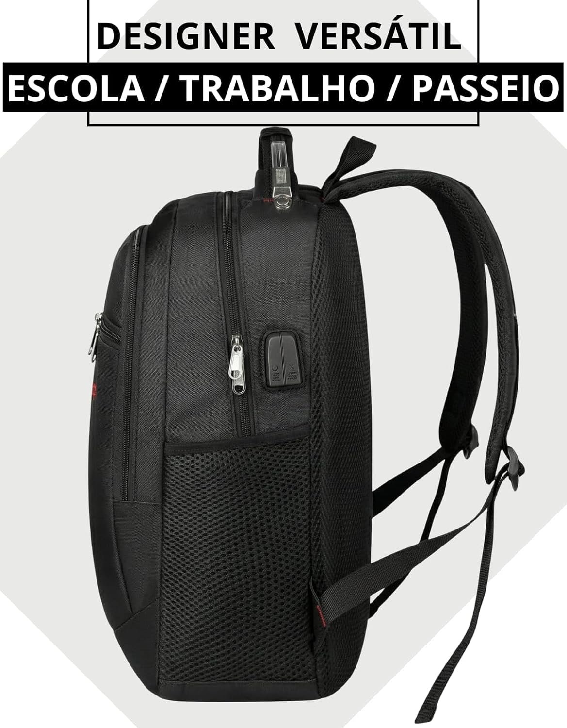 MOCHILA MASCULINA FEMININA NOTEBOOK ESCOLAR EXECUTIVA VIAGEM IMPERMEÁVEL CABO DE AÇO REFORÇADA RESISTENTE PRETA JOVEM JUVENIL TRABALHO