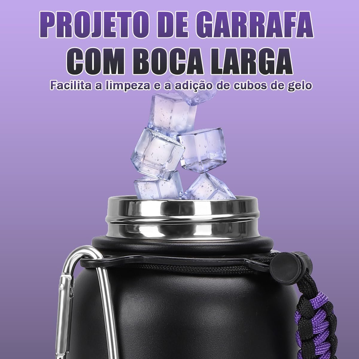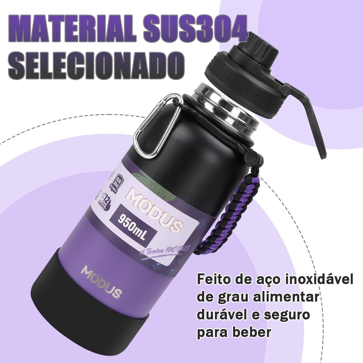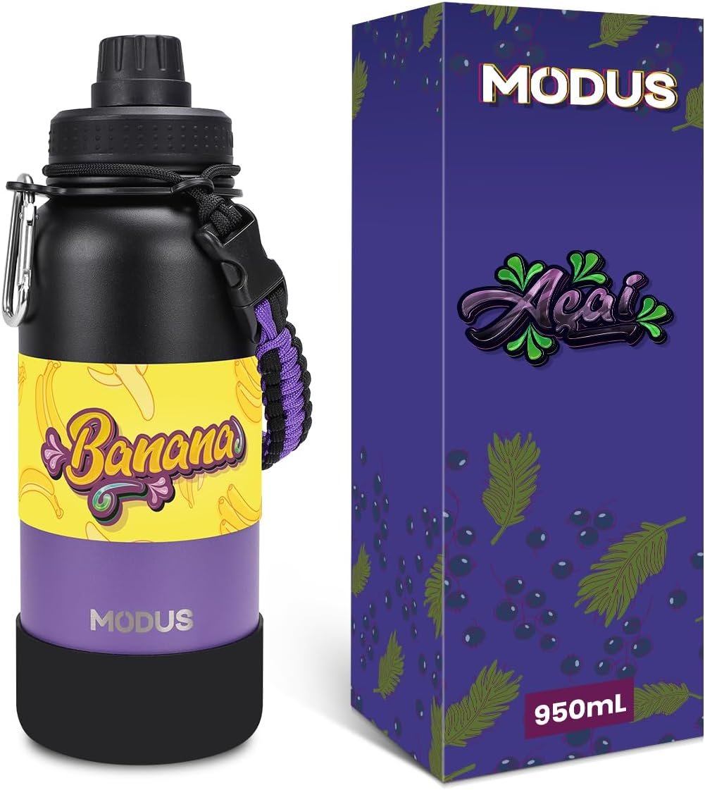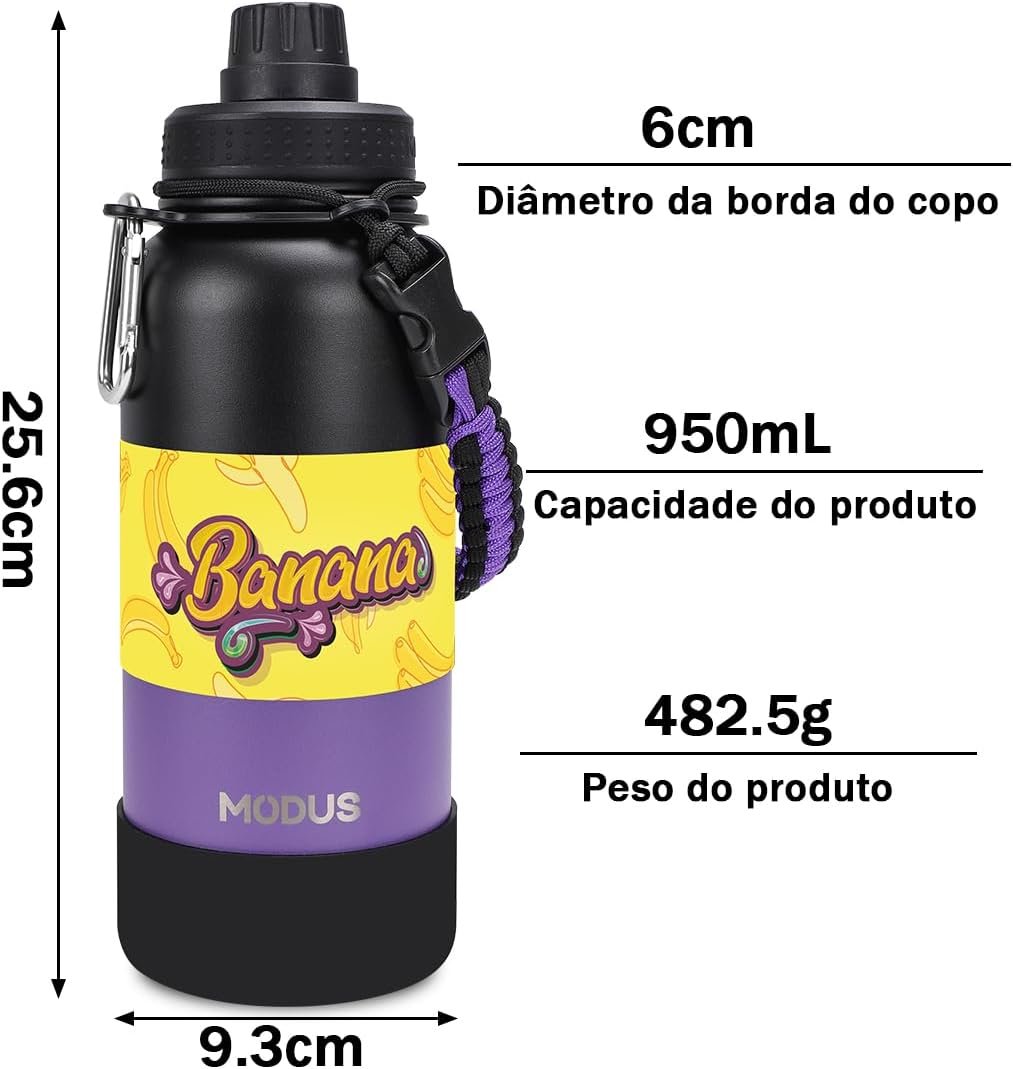 MODUS 1000mL Garrafa de Água Térmica Esportiva Inox Isolada a Vácuo com Base Emborrachada Anti Derrapante (Gradiente Preto a Roxo)