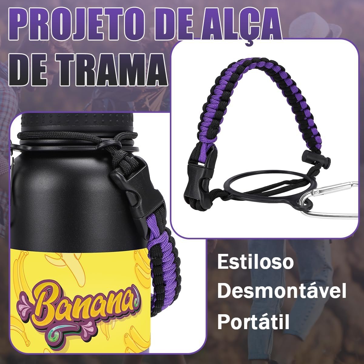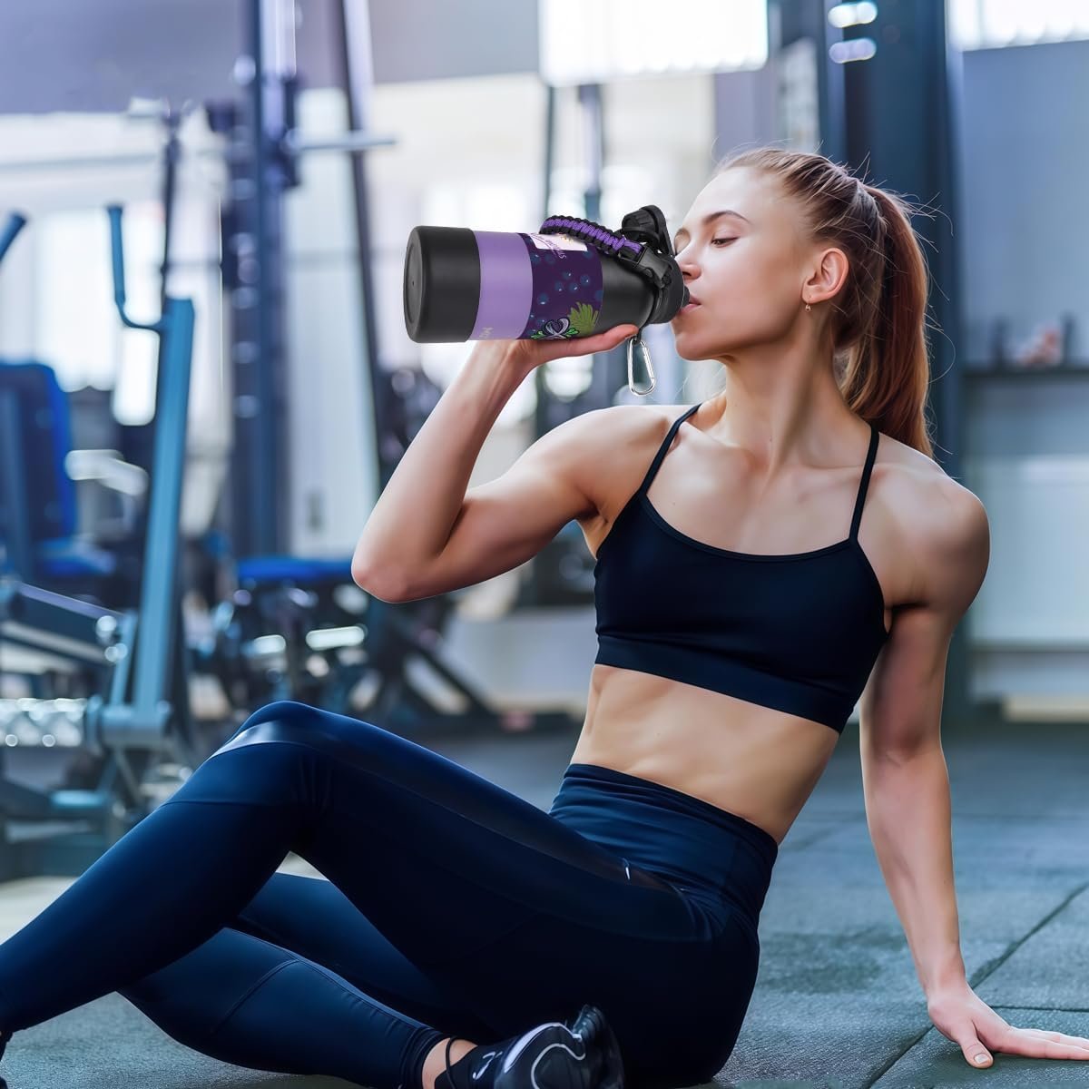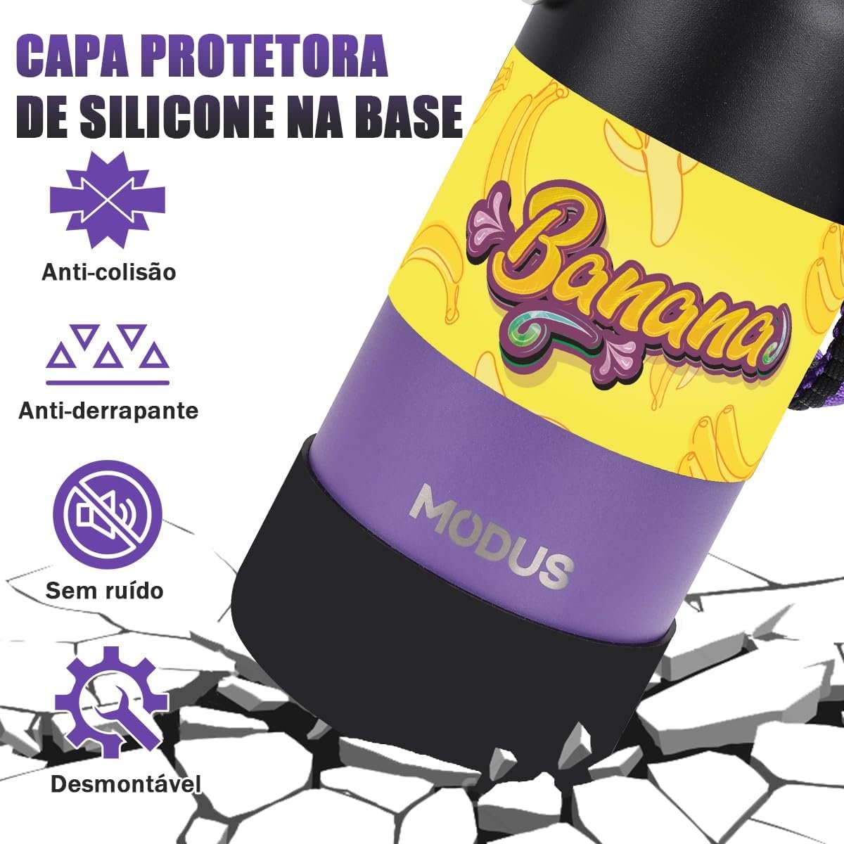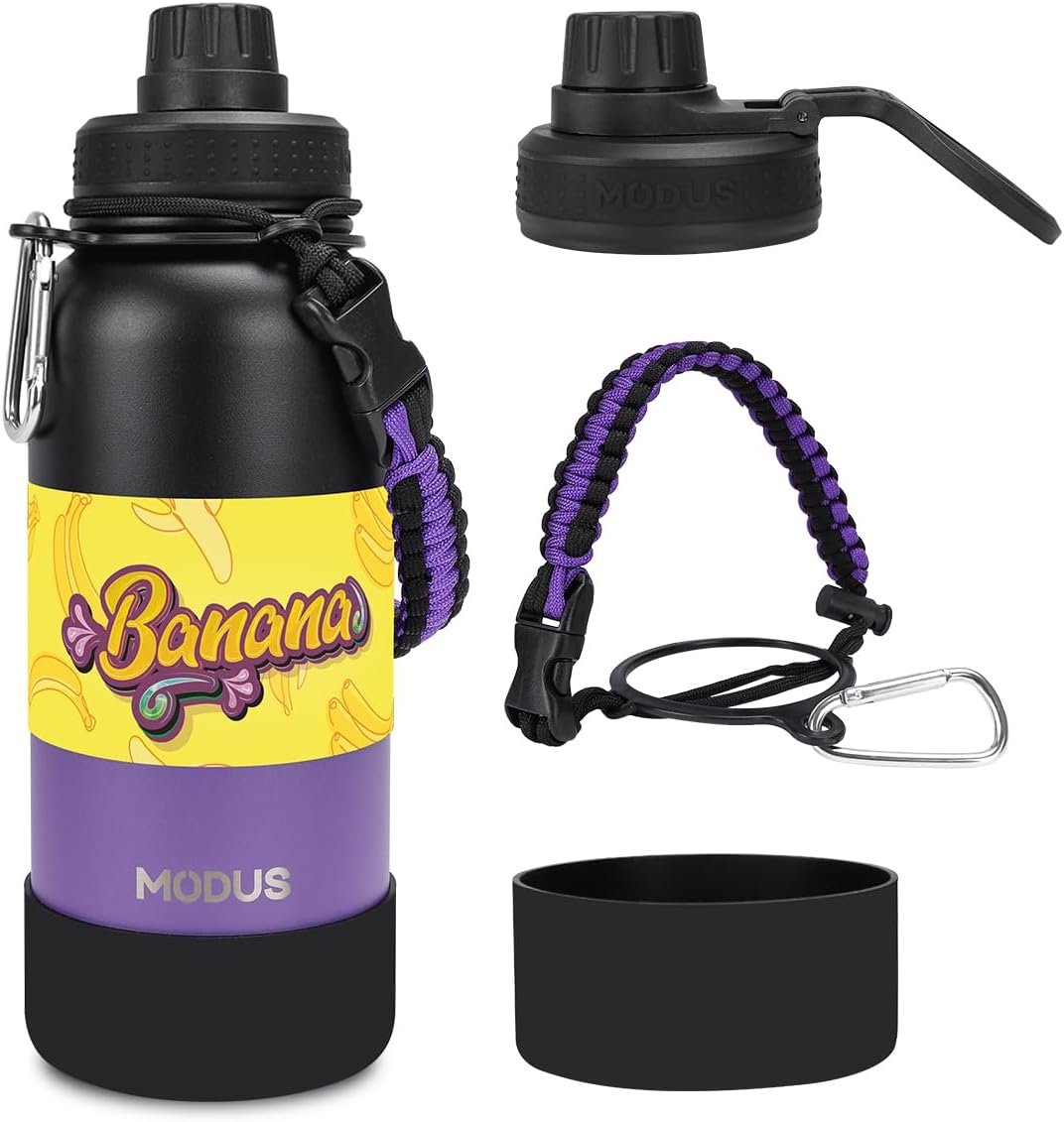 MODUS 1000mL Garrafa de Água Térmica Esportiva Inox Isolada a Vácuo com Base Emborrachada Anti Derrapante (Gradiente Preto a Roxo)
