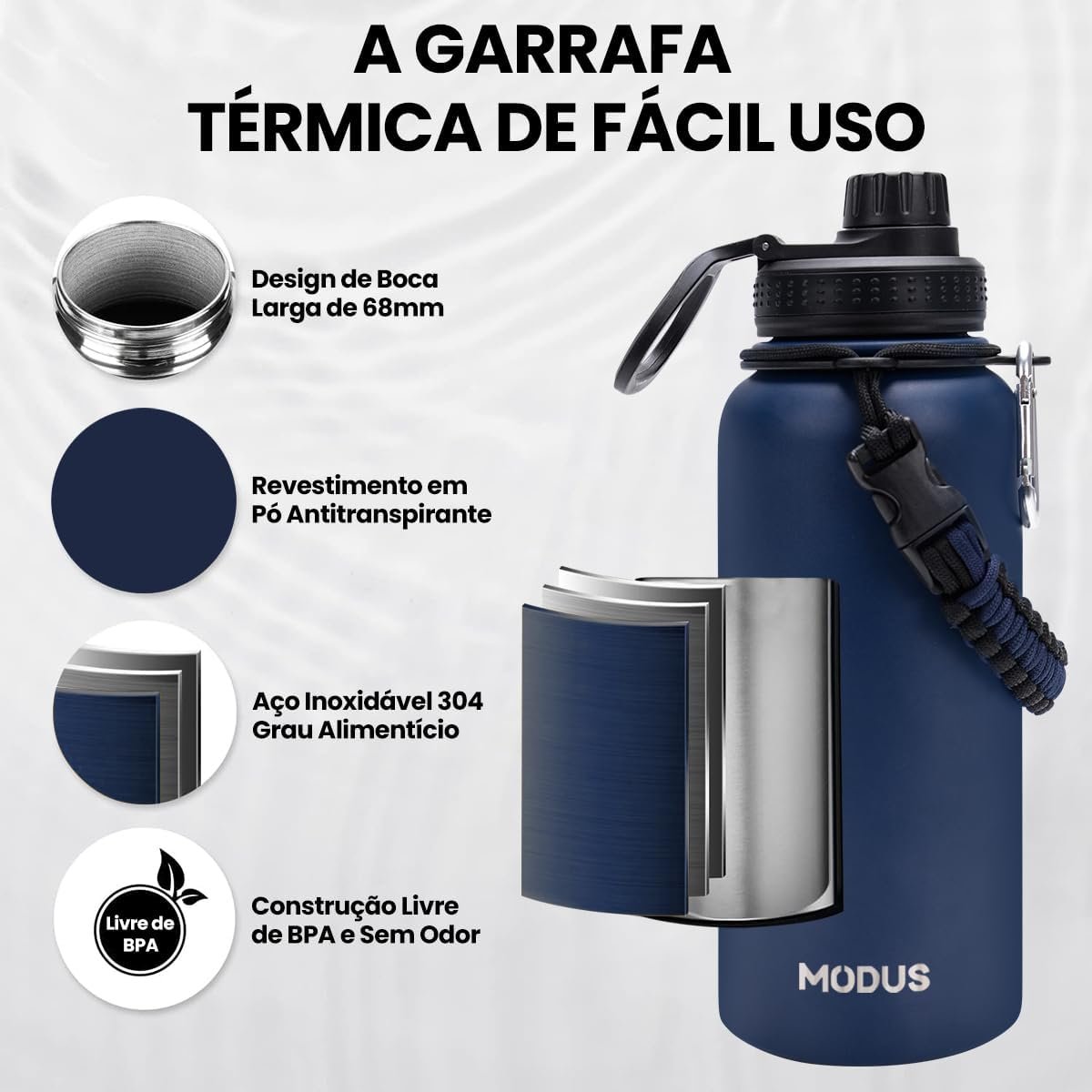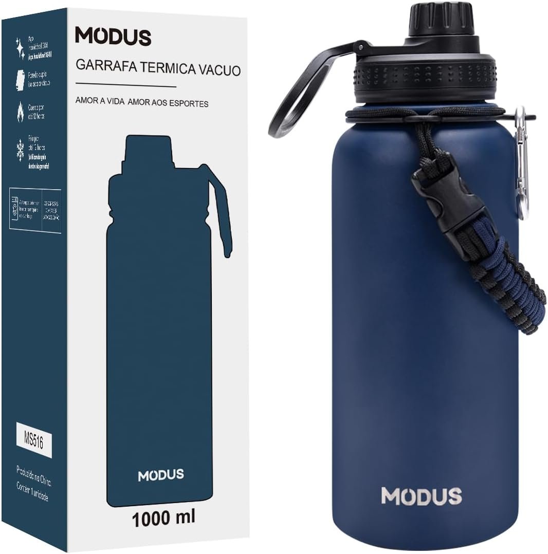 MODUS Garrafa Térmica Esportiva De Aço Inoxidável Com Isolamento A Vácuo De 1000ML (Azul)MODUS Garrafa Térmica Esportiva De Aço Inoxidável Com Isolamento A Vácuo De 1000ML (Azul)