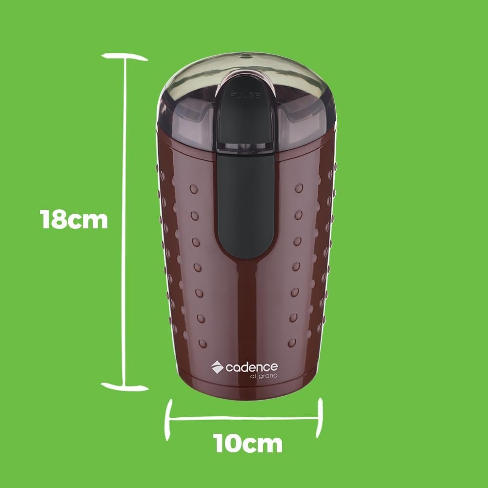 Desfrute de deliciosos cafés moídos na hora com o Moedor de Café di Grano da Cadence. Com design elegante em tom marrom, este moedor possui potência de 150W e capacidade para moer grãos na voltagem de 110v. Transforme sua experiência de degustar café com praticidade e qualidade.