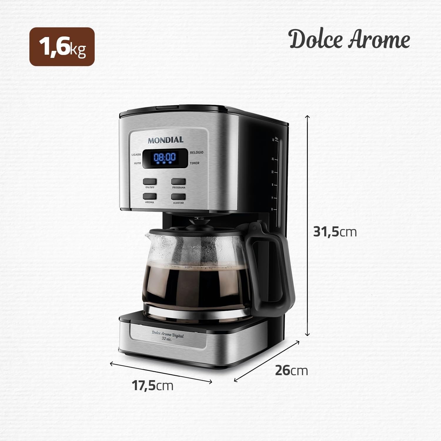 MONDIAL Cafeteira Elétrica Dolce Arome Digital, Preto/Inox, 800W, 110V – C-44-32X-SDI