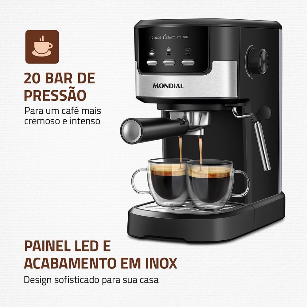 MONDIAL Cafeteira Espresso Dolce Crema 20 Bar, Preto/Inox, 1200W, 110V – C-20-EC