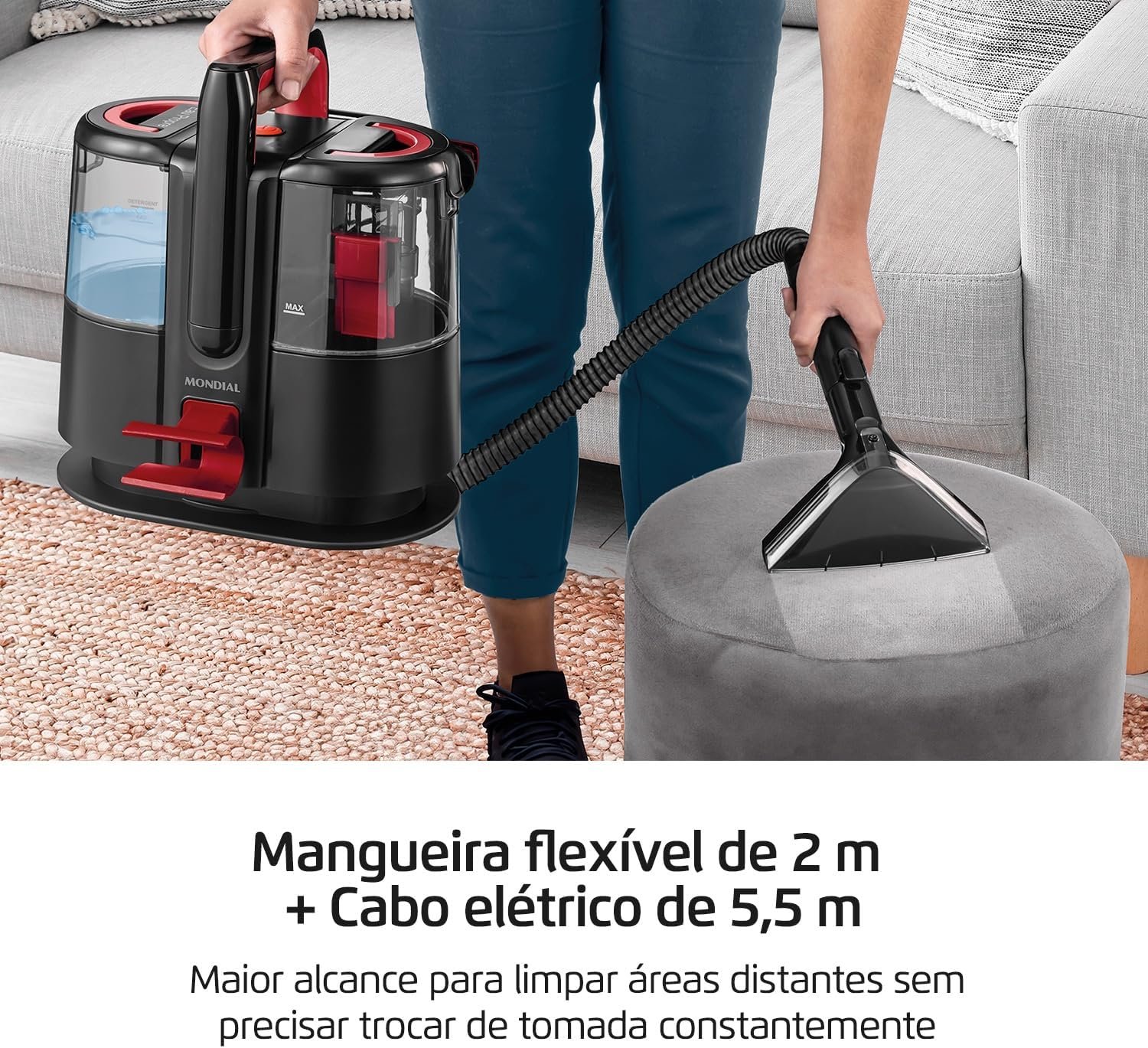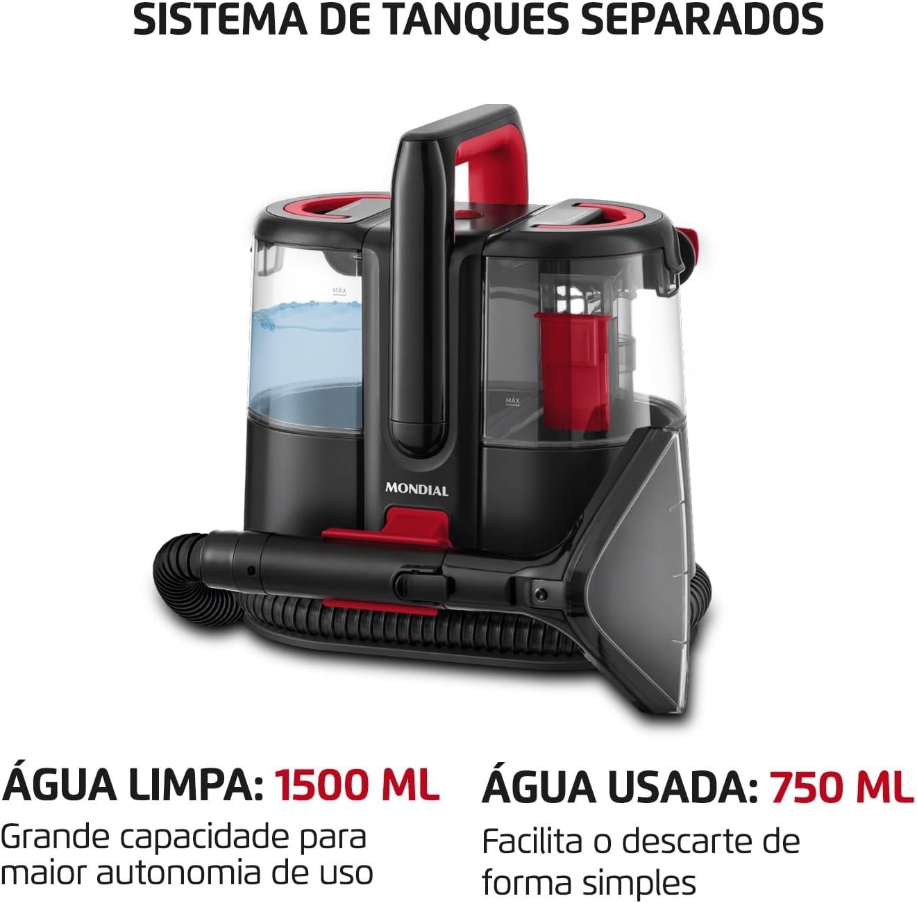 MONDIAL Extratora e Higienizadora Portátil Deep Cleaner I, Preto/Vermelho, 1650W, 110V – EXP-01-R