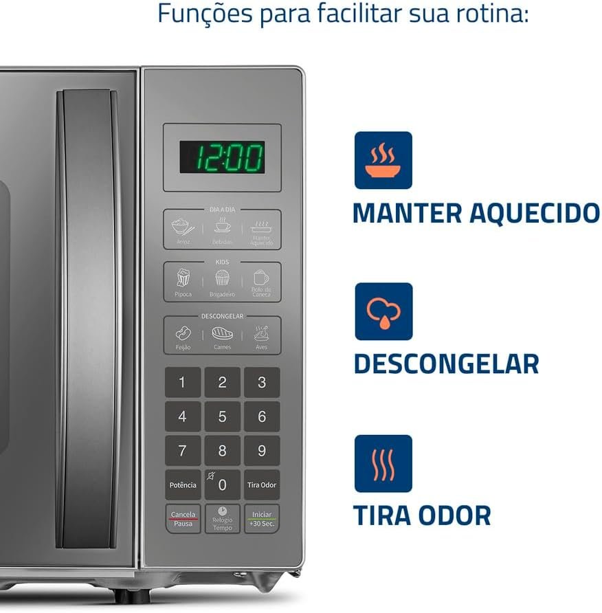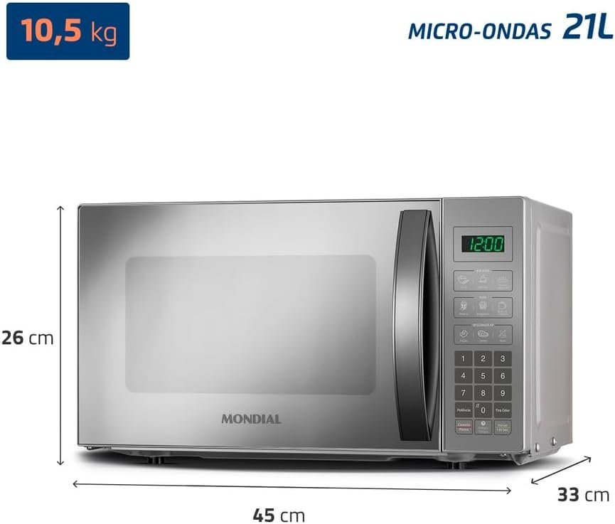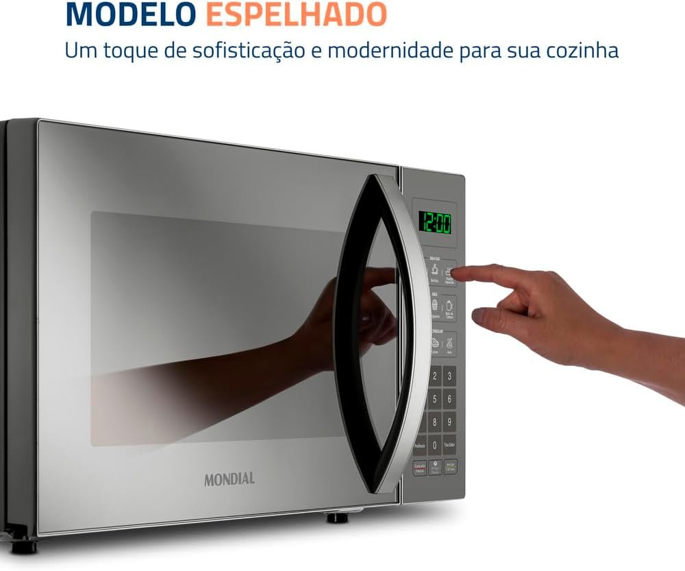 MONDIAL Micro-Ondas, Cinza/Espelhado, 1200W, 110V – MO-01-21-E