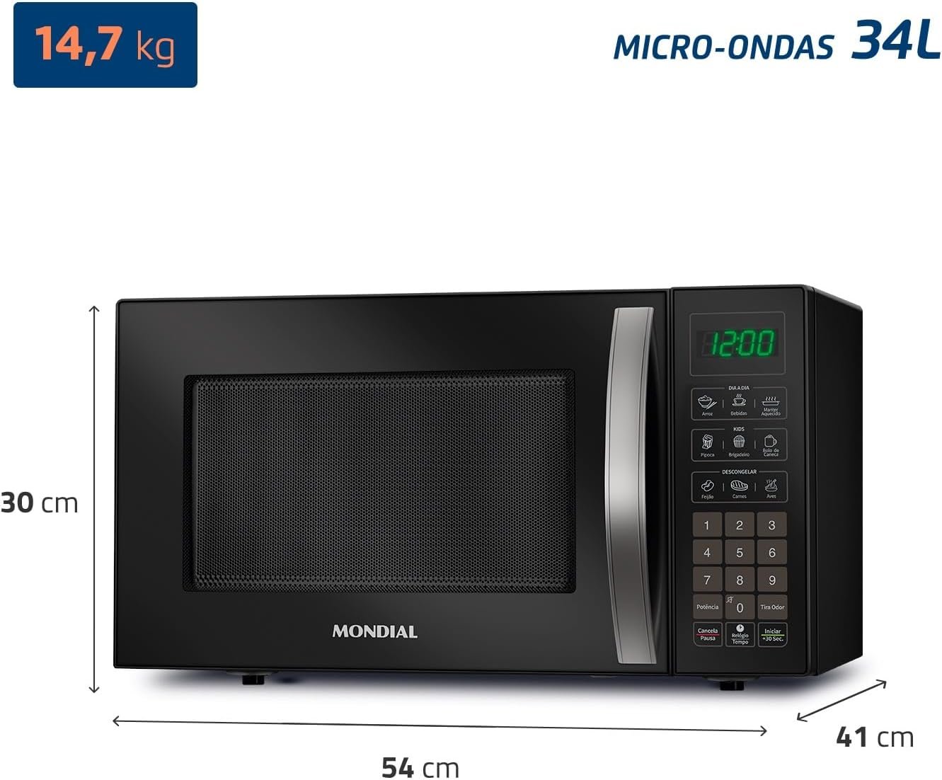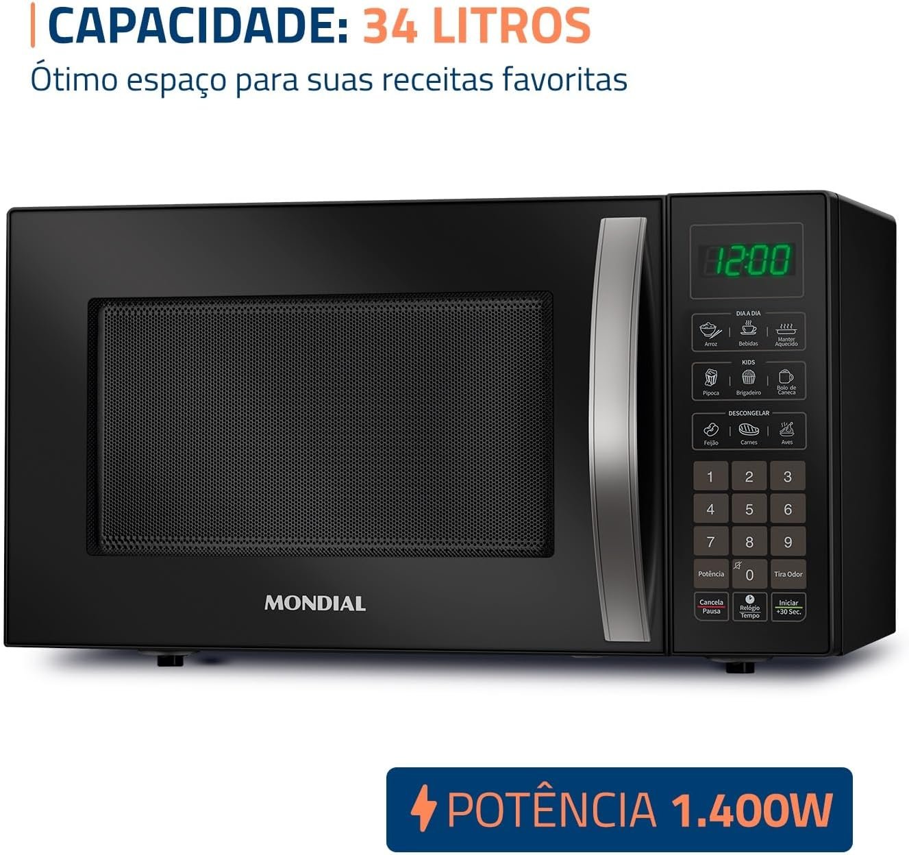 MONDIAL Micro-Ondas, Preto, 1400W, 127V – MO-02-34-B