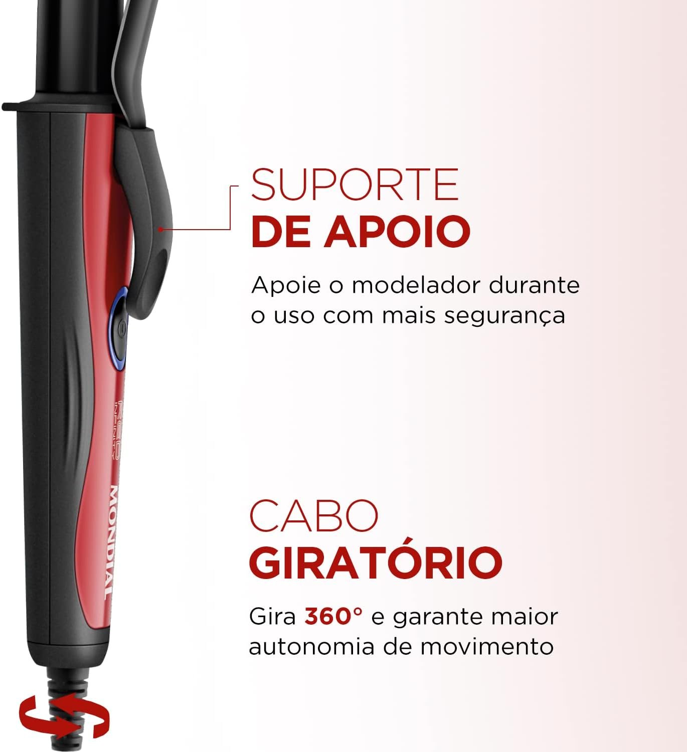 MONDIAL Modelador de Cachos, Preto/Vermelho, Bivolt – EM-12