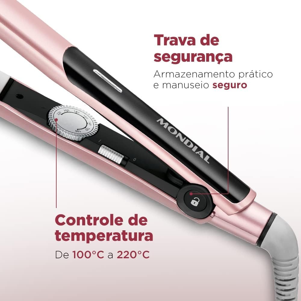 MONDIAL Prancha Alisadora, Golden Rose/Preto, 45W, Bivolt – P-20