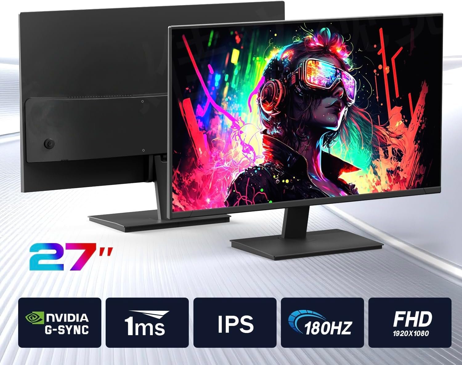 Monitor Gamer IPS 27 Polegadas, Full HD 1920×1080, 180Hz, HDR400, G-SYNC, Alto-falantes Embutidos, Entradas HDMI/DisplayPort/USB/3.5mm, Ângulo ajustável, Compatível com G-SYNC, Preto
