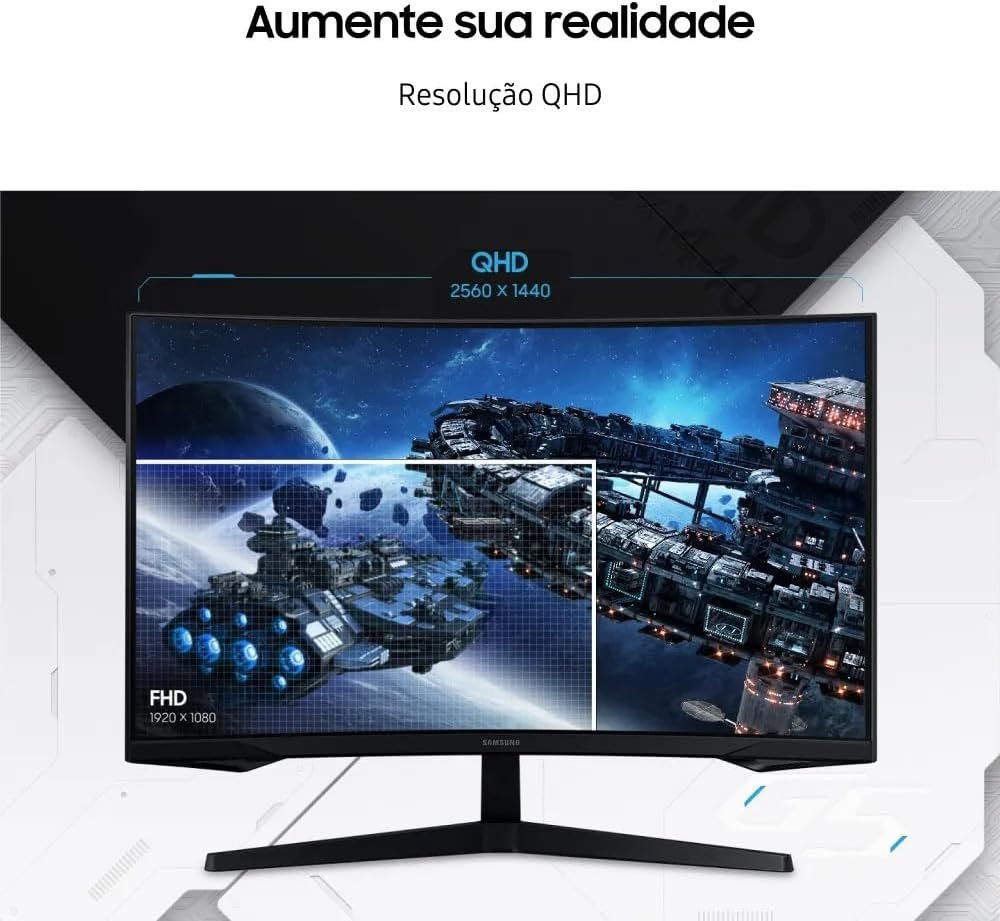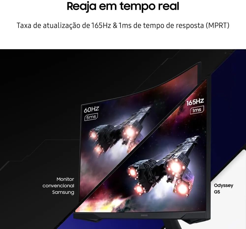 Monitor Gamer Samsung Odyssey G5 27, Resolução QHD, Taxa de atualização de 165Hz & 1ms de tempo de resposta (MPRT), Curvatura com 1000R, HDR 10, AMD FreeSync, Eye Saver Mode & Flicker Free Mode