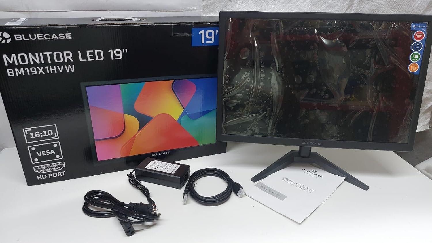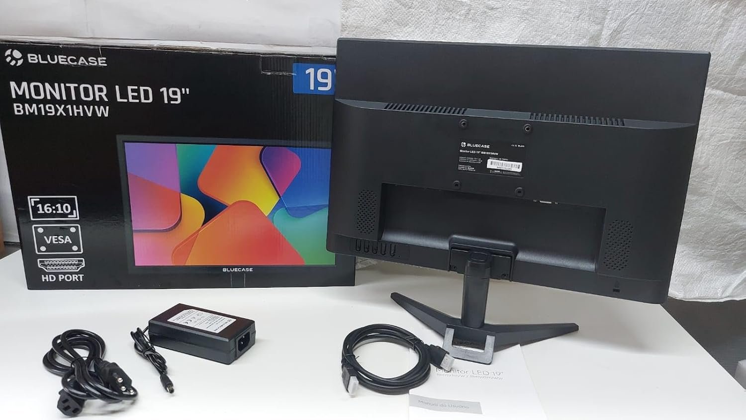 Monitor LED 19″ Bluecase, Resolução 1440×900, Conexões HDMI e VGA, Fonte Externa