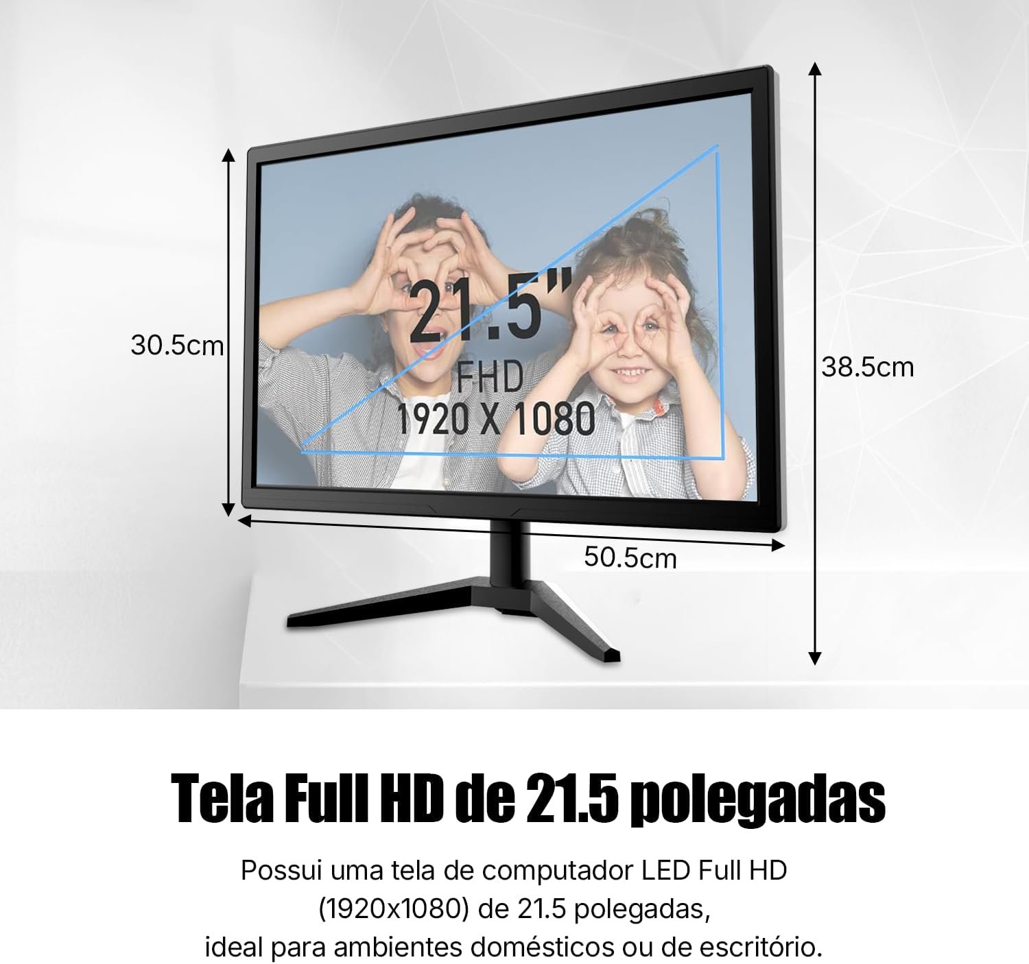 Título do Produto: Monitor LED 21,5 Polegadas, Alto-falantes Integrados, Full HD 1920×1080, 100 Hz, 230cd/m², HDMI/VGA/3.55
