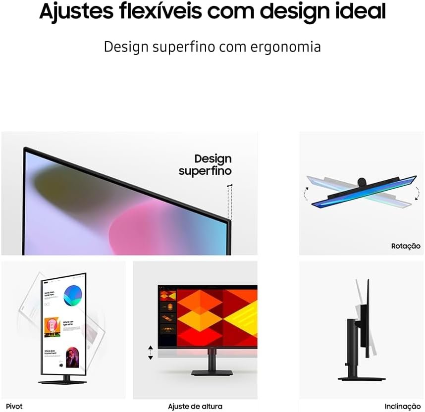 Monitor Samsung 24″, FHD, ajuste de altura, 100Hz, USB Hub, Display Port, HDMI, Preto, S4