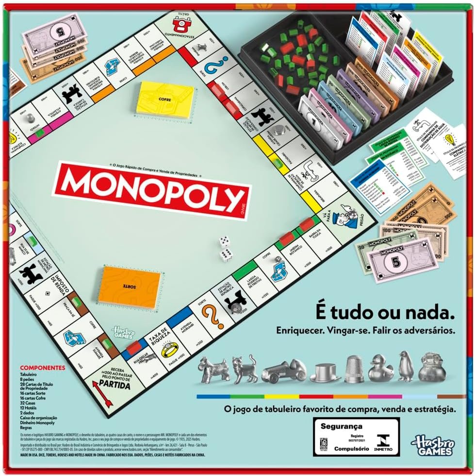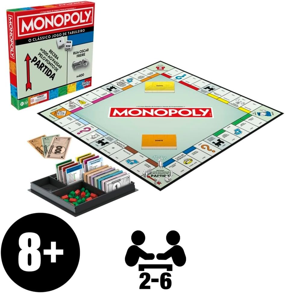 Monopoly Jogo de tabuleiro para a família, jogos de estratégia, 2 a 6 jogadores, jogos para crianças