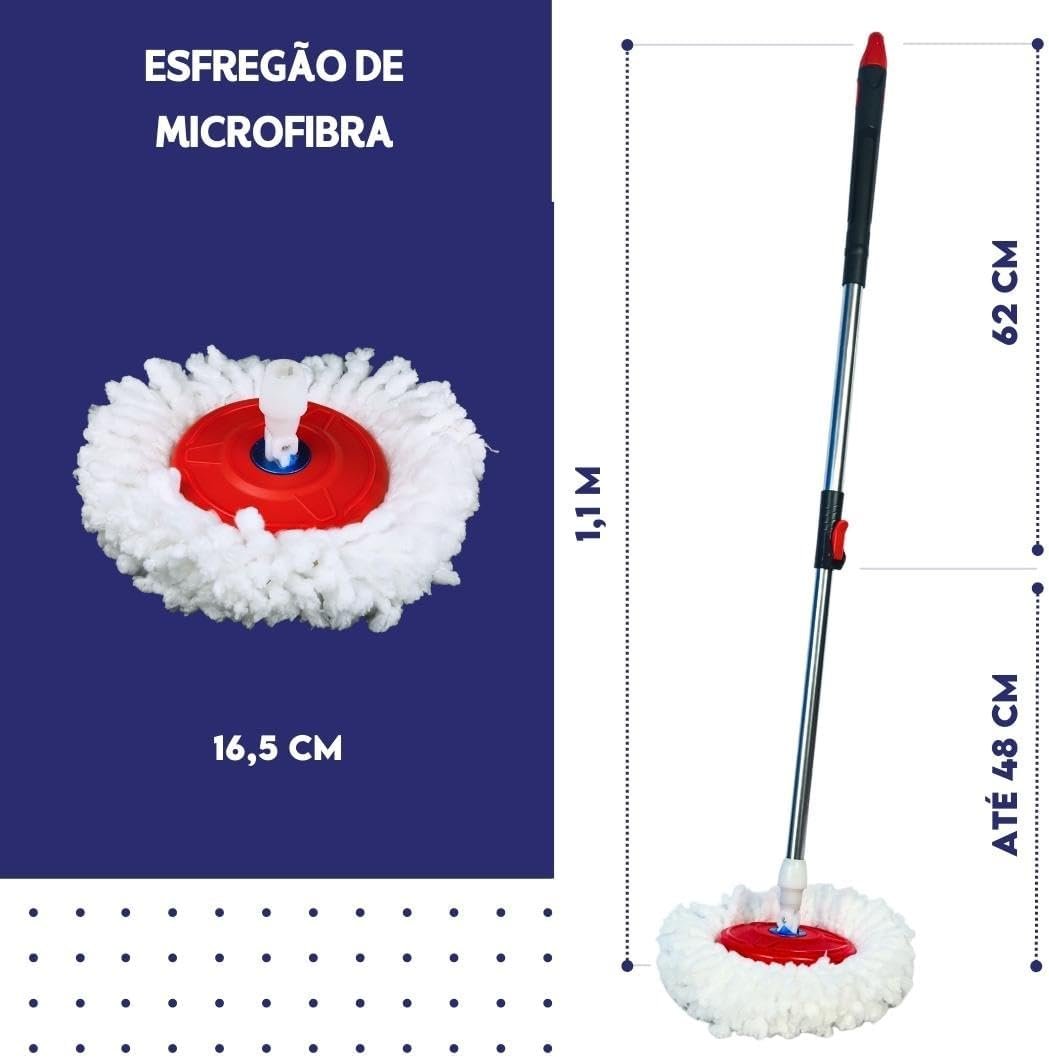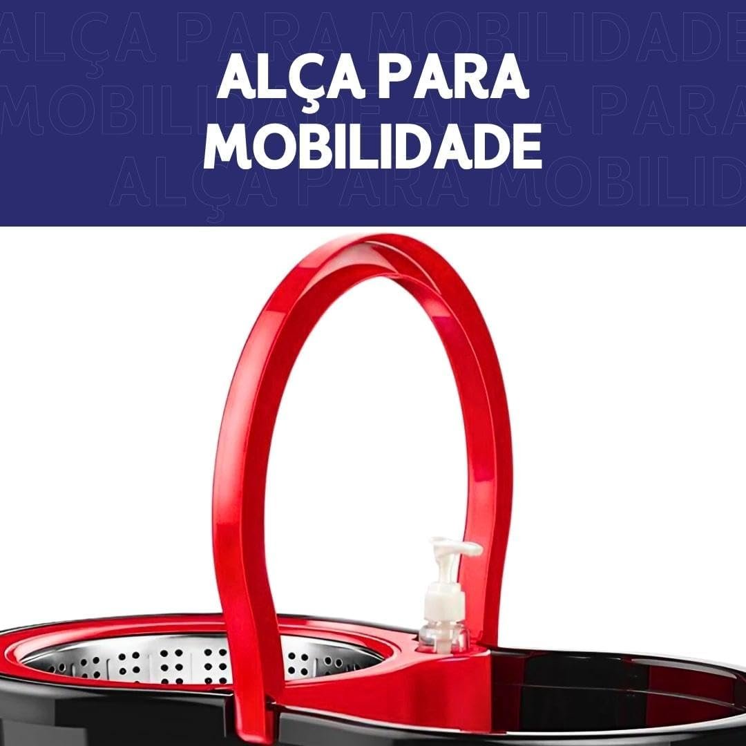 **Título do Produto:** Mop Giratório Vermelho e Preto Com Cesto Em Inox C/2 Refil De Microfibra e Dispenser Para Sabão – Nybc