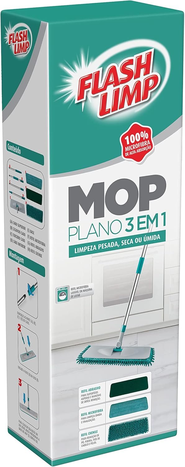 Descrição: O Mop Plano 3 em 1 da Flash Limp é a solução completa para a limpeza da sua casa. Com design inovador, ele proporciona uma limpeza eficaz em diferentes superfícies. Seja para limpeza pesada, úmida ou para tirar o pó, este mop versátil e prático é o aliado perfeito para manter seu lar impecável. Com materiais de alta qualidade, como o inox e a cor verde vibrante, o MOP0617 une durabilidade e estilo em um único produto.