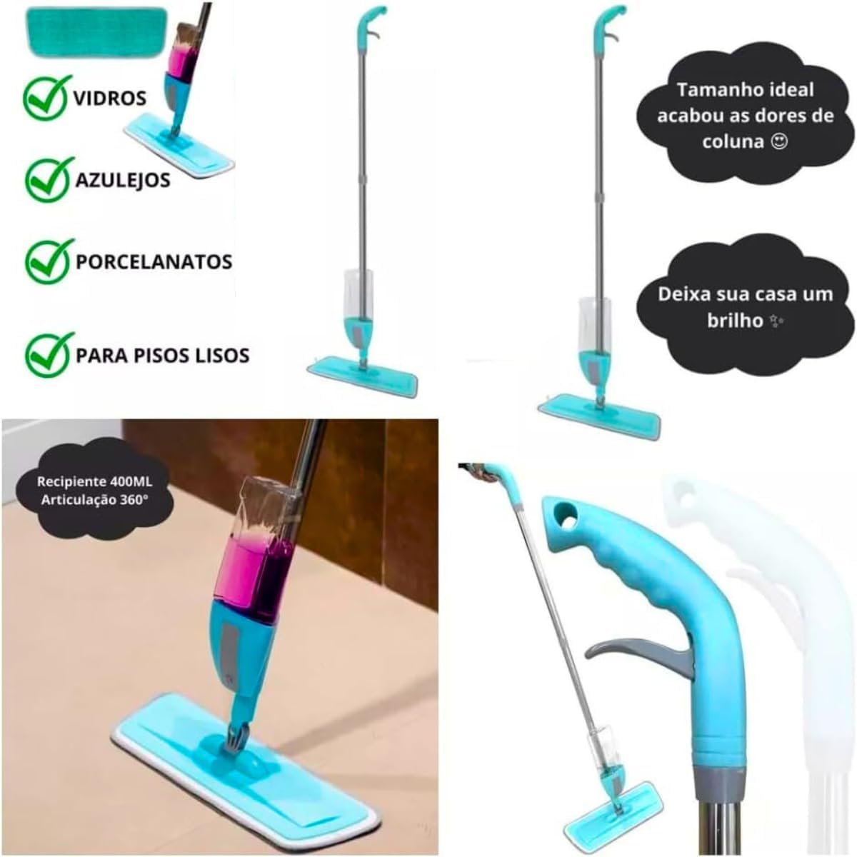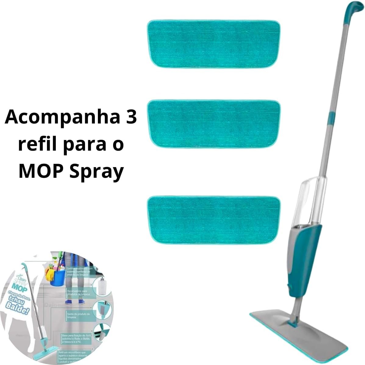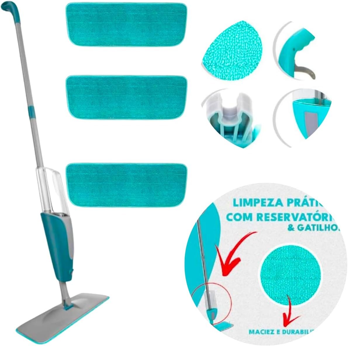 Mop Spray Fit Esfregao Para Limpeza da Casa Com Gatilho e Reservatorio Dispenser Para Agua Desinfetante + 3 Refil de Microfibra (Borrifa, limpa e Seca) Limpeza Simples e Facil MOP SPRAY CASA LIMPA