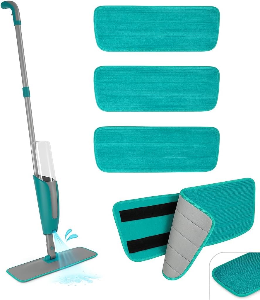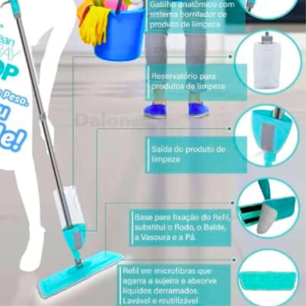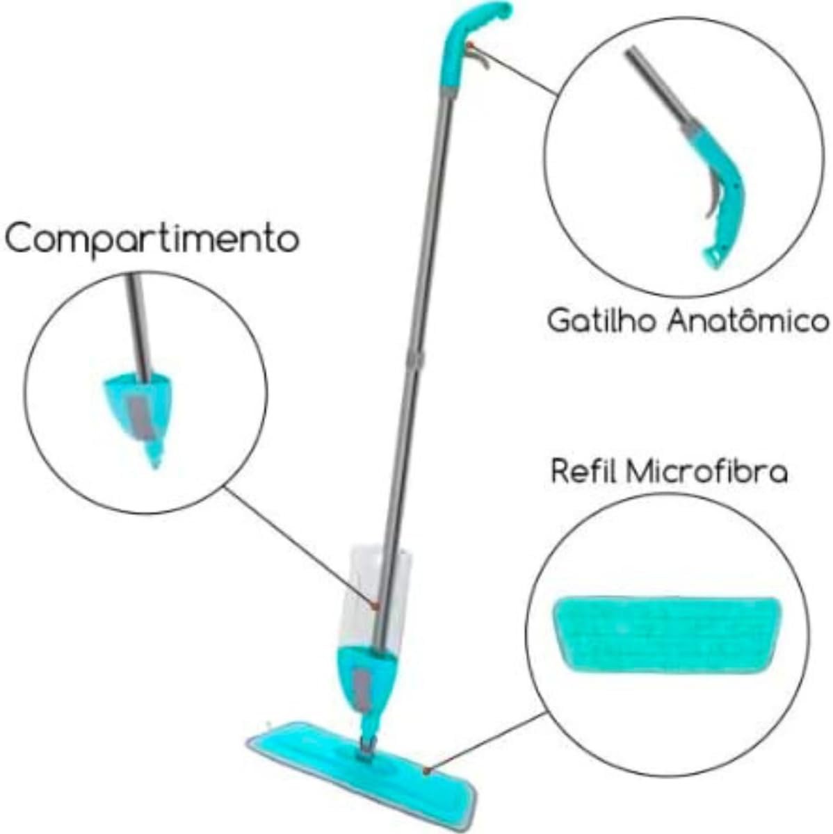 Mop Spray Fit Esfregao Para Limpeza da Casa Com Gatilho e Reservatorio Dispenser Para Agua Desinfetante + 3 Refil de Microfibra (Borrifa, limpa e Seca) Limpeza Simples e Facil MOP SPRAY CASA LIMPA