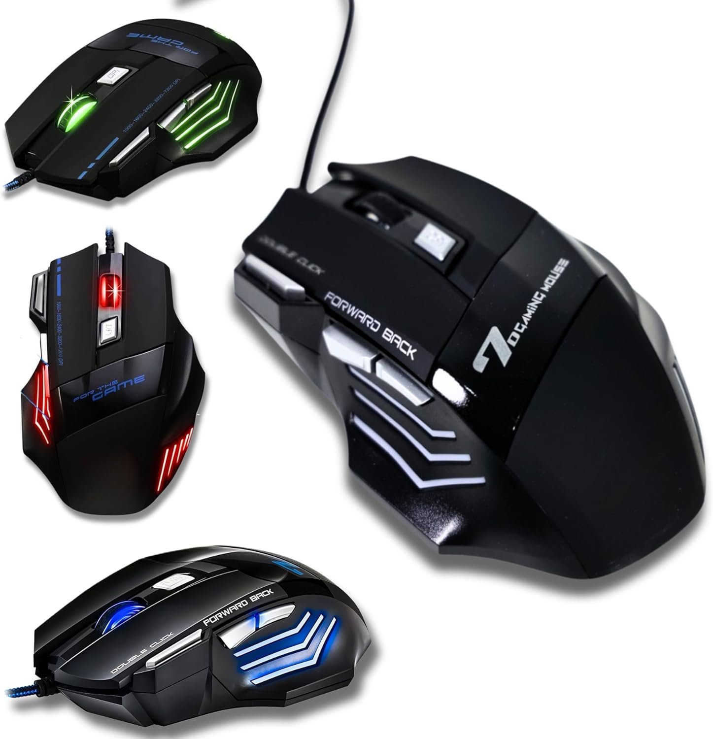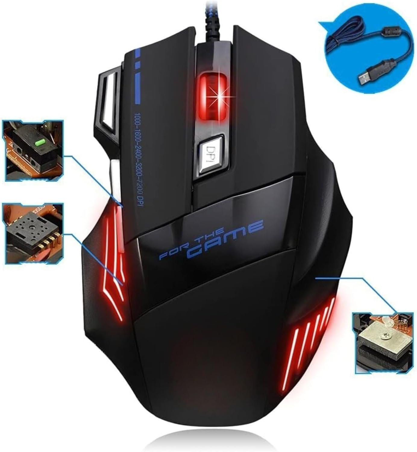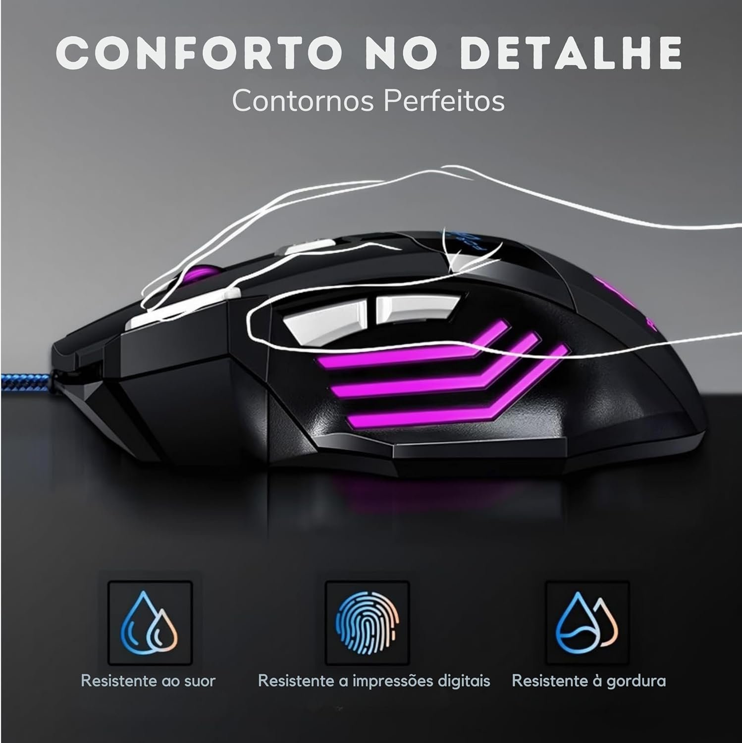 Mouse Gamer 6000 DPI Ajustável • 7 botões LED RGB • MTS • Alta Precisão e Velocidade • Clique Duplo • Cabo Reforçado Super Rápido Ergonômico Premium Jogos Trabalho Estudos
