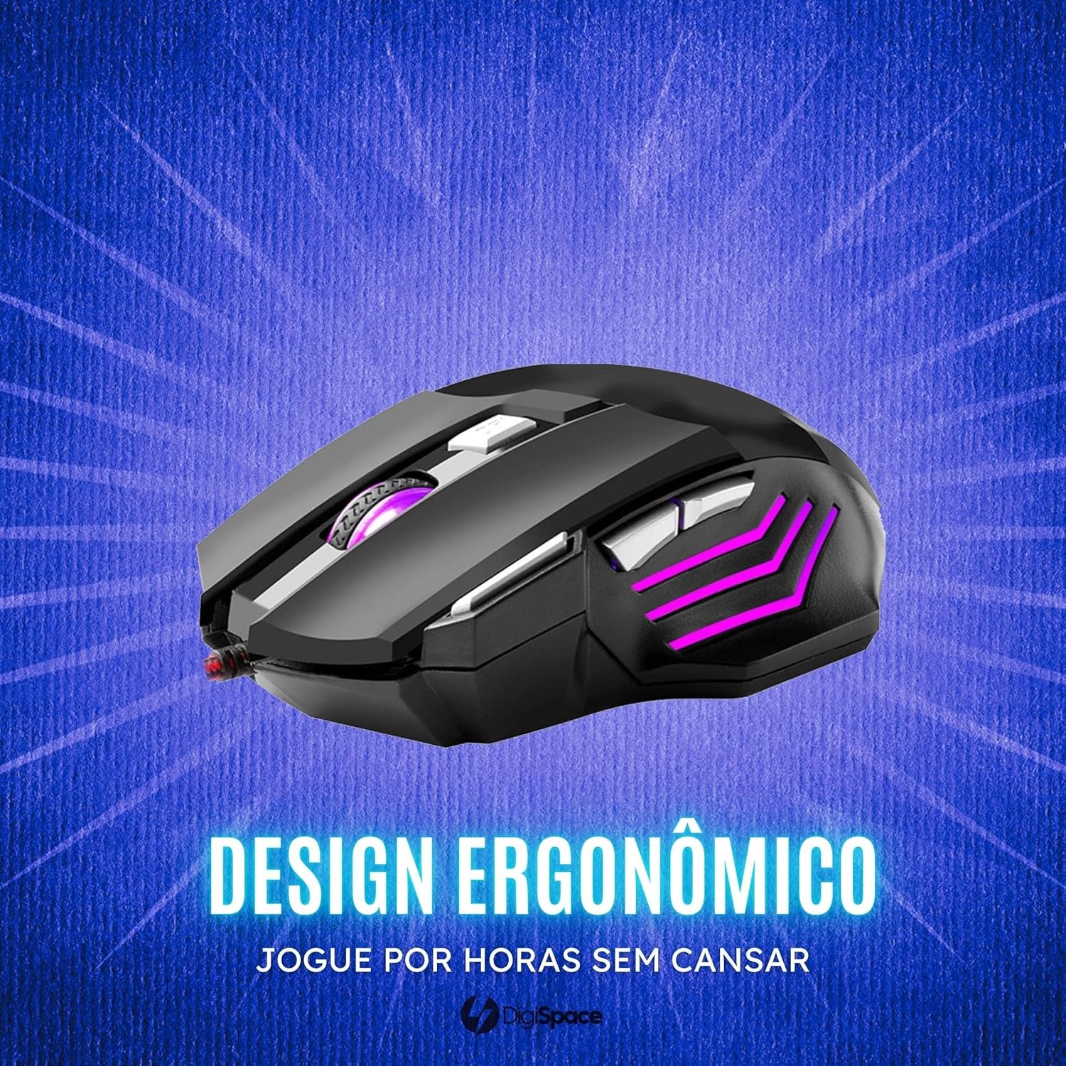 O cabo reforçado super rápido garante durabilidade e desempenho excepcionais, enquanto o design ergonômico antideslizante proporciona conforto mesmo em sessões de uso prolongadas. Clique duplo premium para uma resposta instantânea em cada movimento. Domine o jogo com o Mouse Gamer 7D!