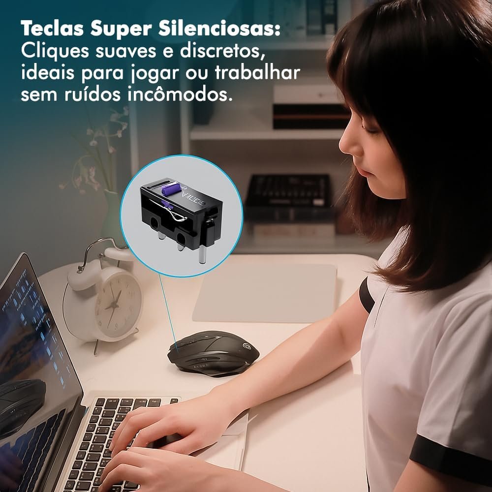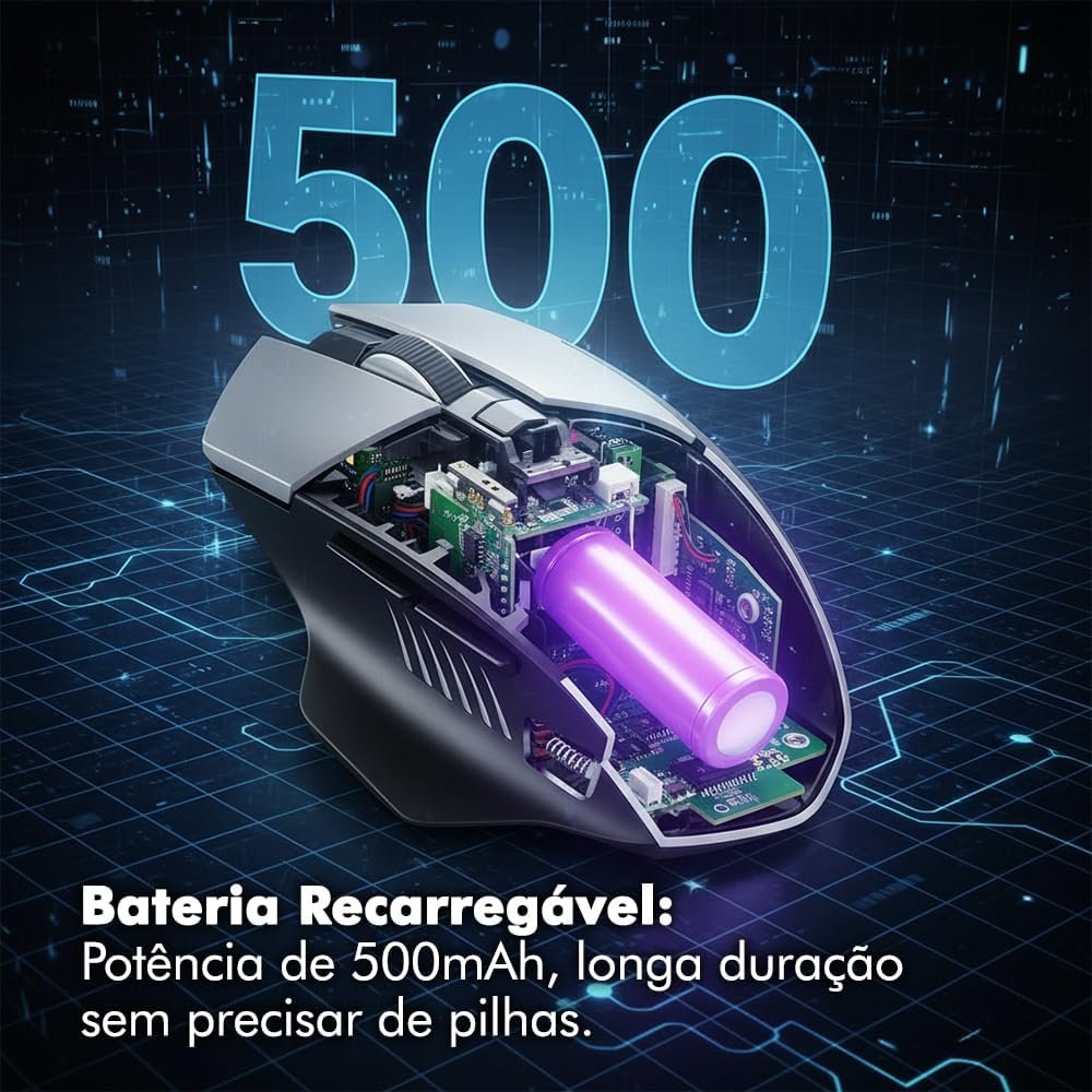 Mouse Gamer Easy Gaming Sem Fio Recarregável – 1600 DPI Ajustável, Teclas Super Silenciosas, USB 2.4GHz, Design Ergonômico, Bateria de Longa Duração, Óptico Preciso