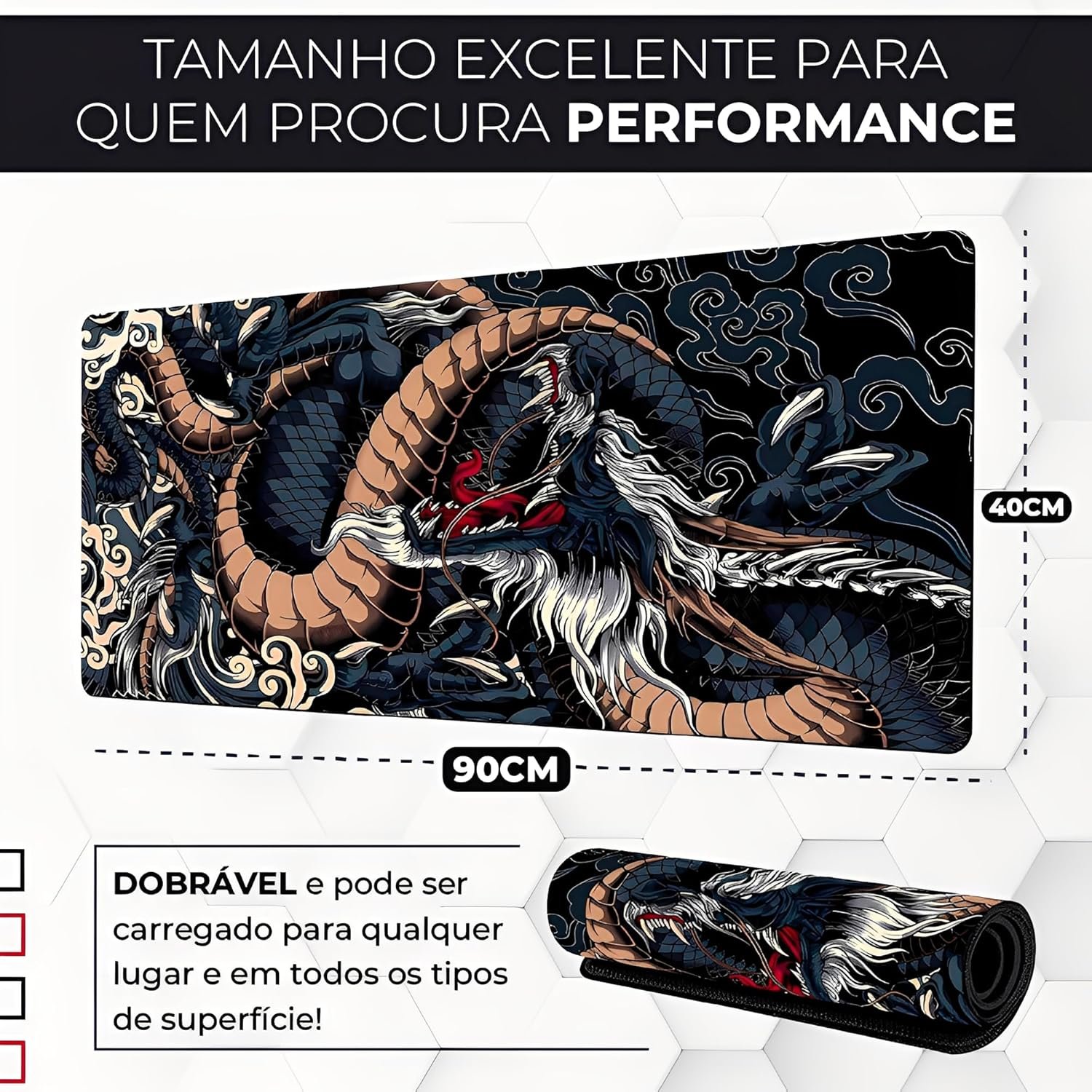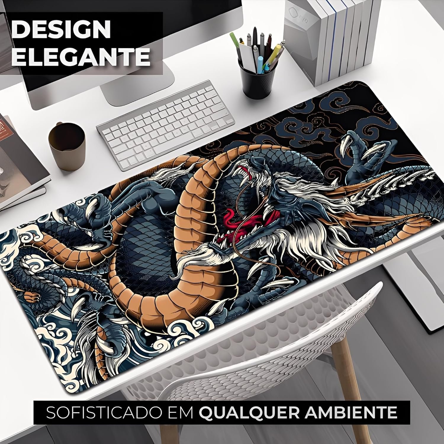 Mouse Pad Gamer Extra Grande 900x400mm Mousepad Gamer – Transforme sua experiência de jogo com o mouse pad gamer definitivo! Desfrute de uma superfície ultralisa que proporciona movimentos precisos, base antiderrapante para máxima estabilidade, bordas costuradas para maior durabilidade e um design premium de dragão azul que vai elevar o estilo do seu setup. Ideal para gamers que buscam performance e conforto, além de ser perfeito para aumentar sua produtividade no trabalho. Adquira já o seu mousepad grande e conquiste a vitória em grande estilo!