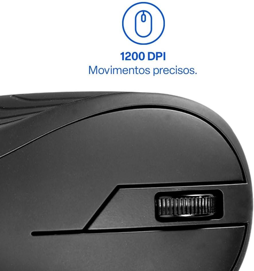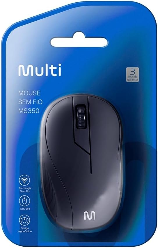 Mouse sem Fio Multi MS350 USB 1200 DPI Ergonômico e Compacto com Alcance de 10m – Preto MO212