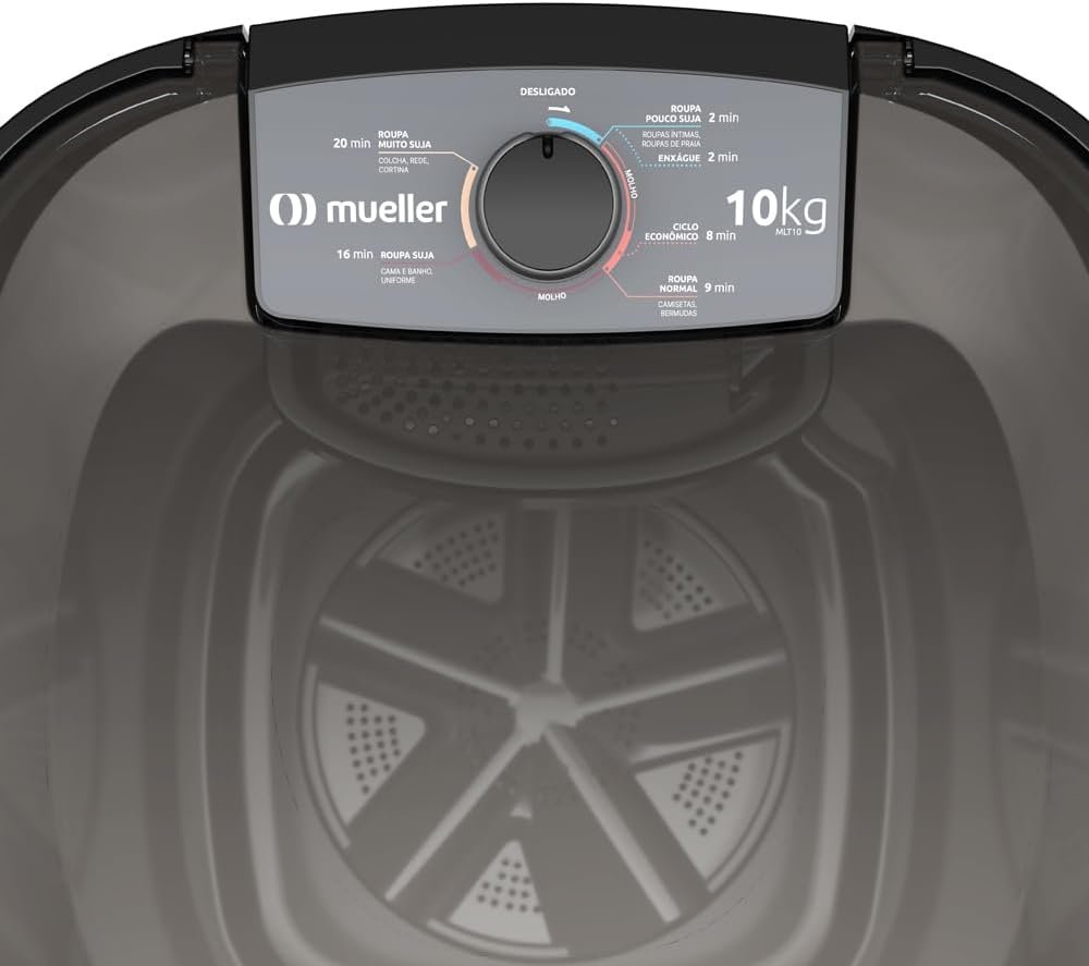 Mueller Máquina de Lavar Roupa Semiautomática Tanquinho 10 kg Preto 220V MLT10