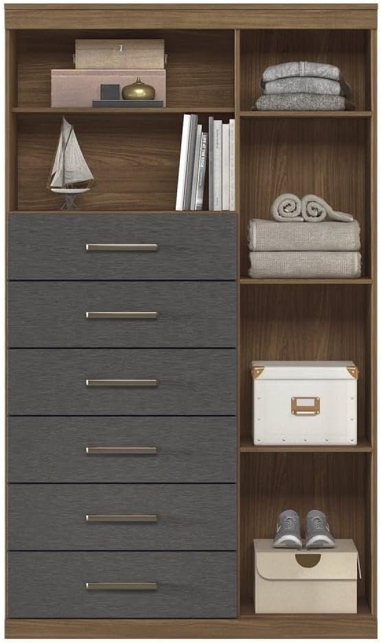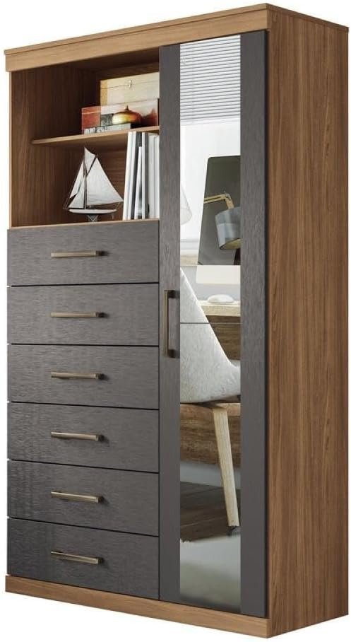 Multi-cômoda 1 Porta 6 Gavetas Marabá com Espelho Jatobá/grafite
