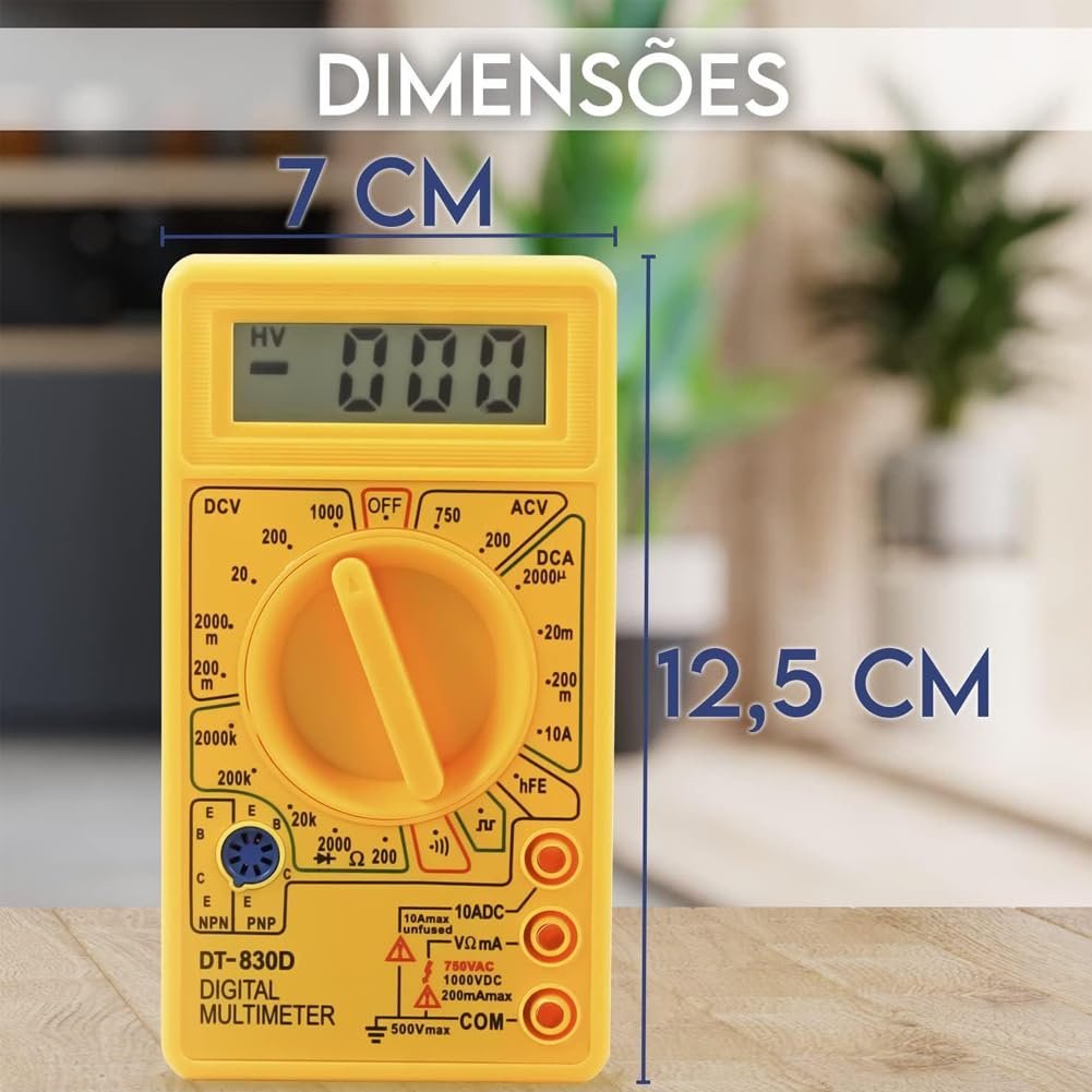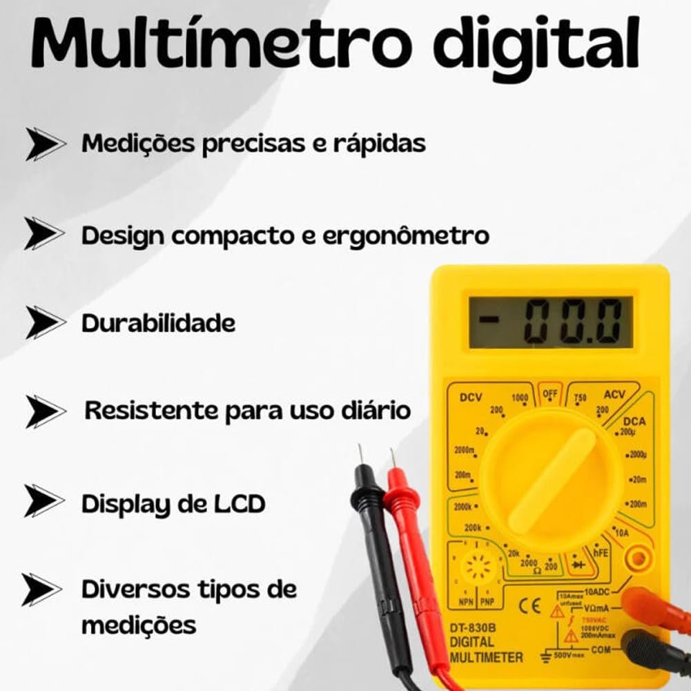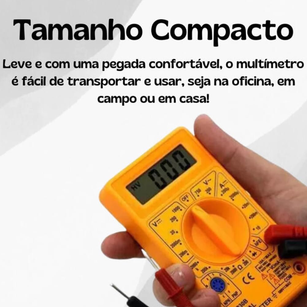 Descubra o Multímetro Digital DT-830 Profissional Portátil, a ferramenta essencial para medições precisas em qualquer lugar. Com bateria de longa duração e cabo multi teste, este multímetro oferece versatilidade e praticidade para profissionais e entusiastas da eletrônica.