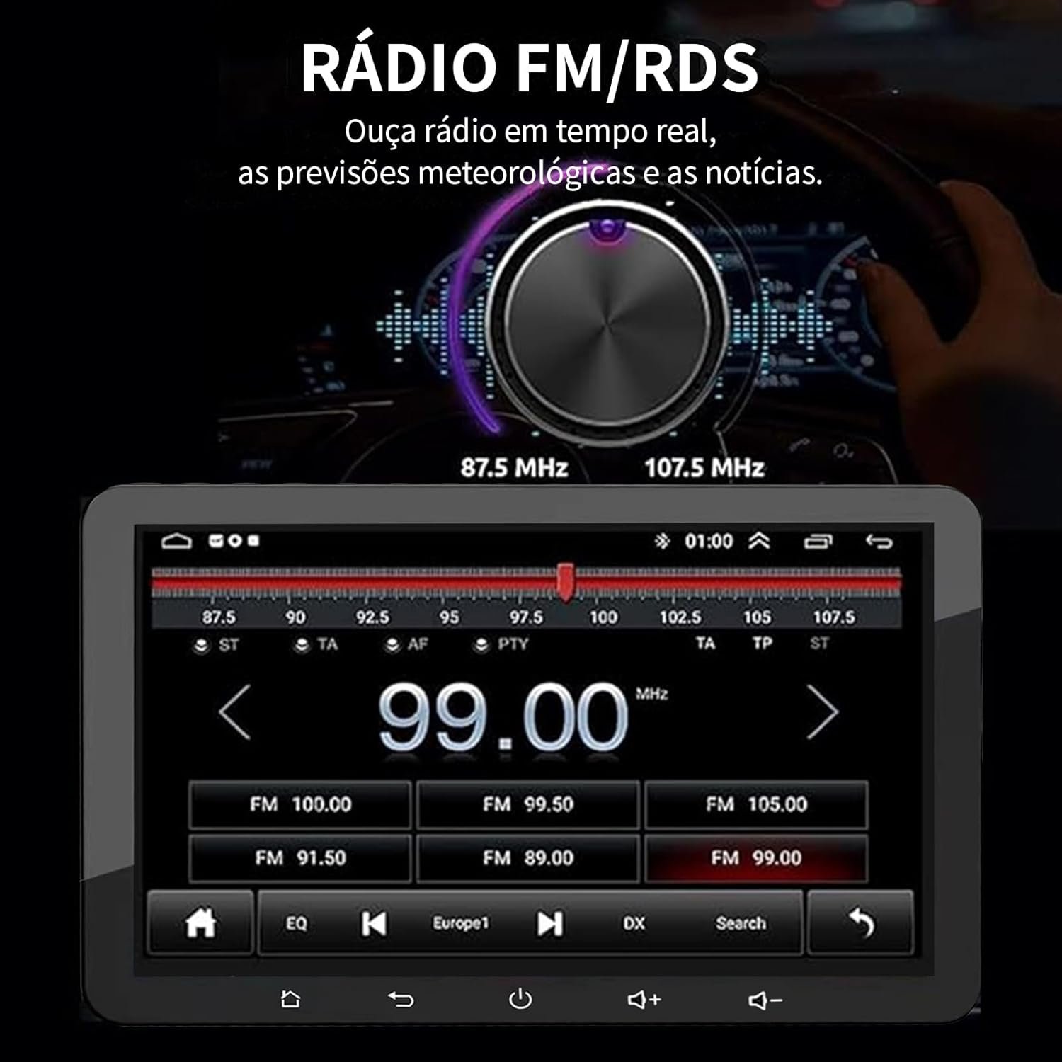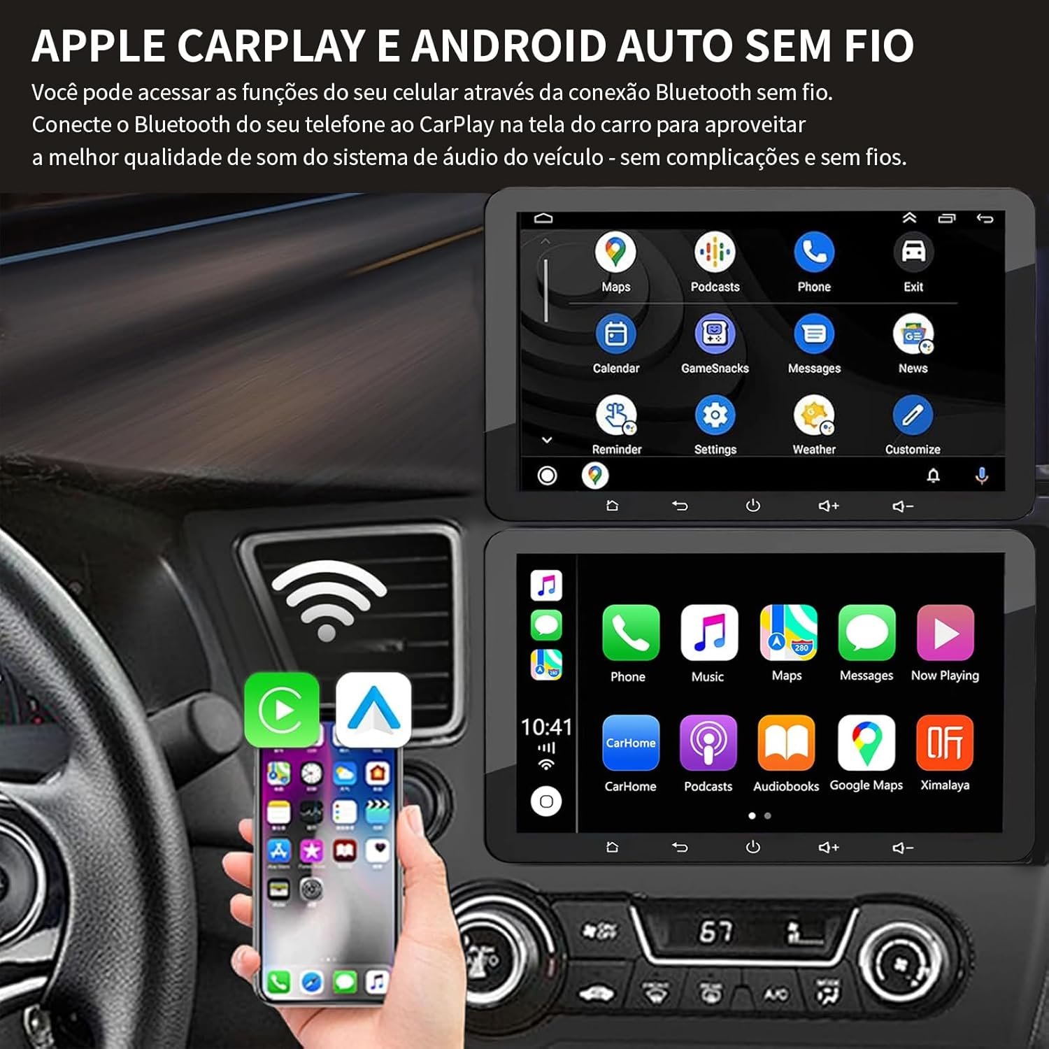 Multimídia 7 Polegadas – Tela Touch HD, Carplay Sem Fio, Câmera de Ré 12 LEDs, Bluetooth 5.1, Mirror Link, GPS, Rádio FM/AM – Ideal para Motoristas que Buscam Conforto e Segurança