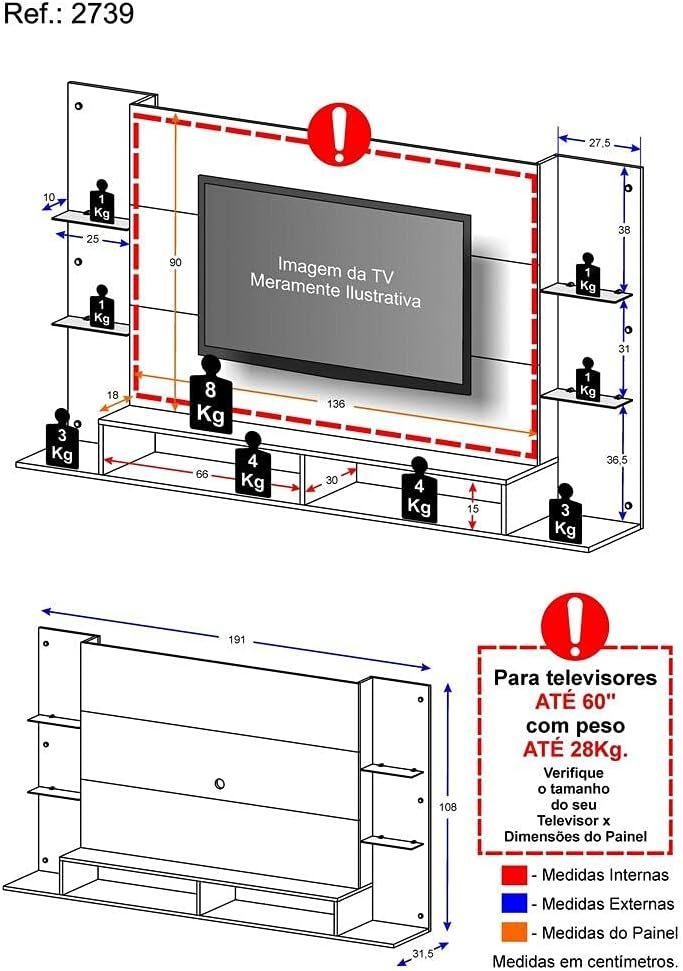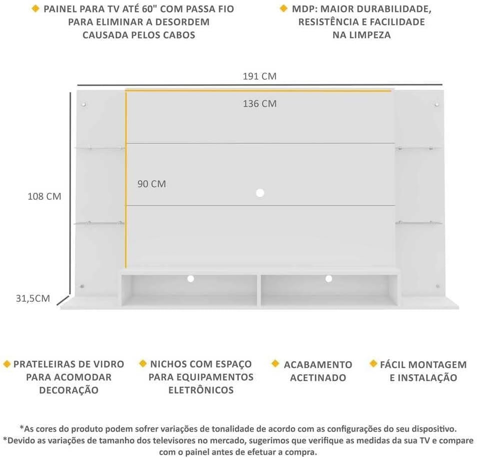 Título do Produto: Multimóveis Painel Nairóbi Plus para TV até 60″ Branco Acetinado Texturizado