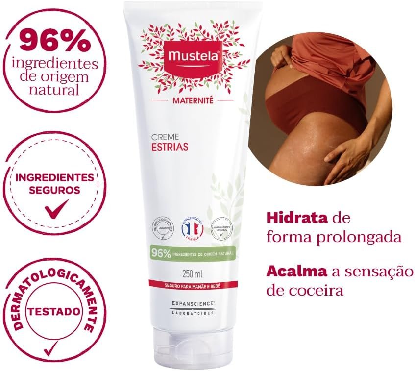Mustela Creme Estrias 250ml – Hidrata e Acalma a Sensação de Coceira – Com 96% de Ingredientes de Origem Natural – Mustela MaternitéMustela Creme Estrias 250ml – Hidrata e Acalma a Sensação de Coceira – Com 96% de Ingredientes de Origem Natural – Mustela Maternité