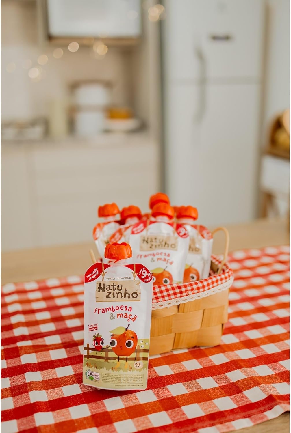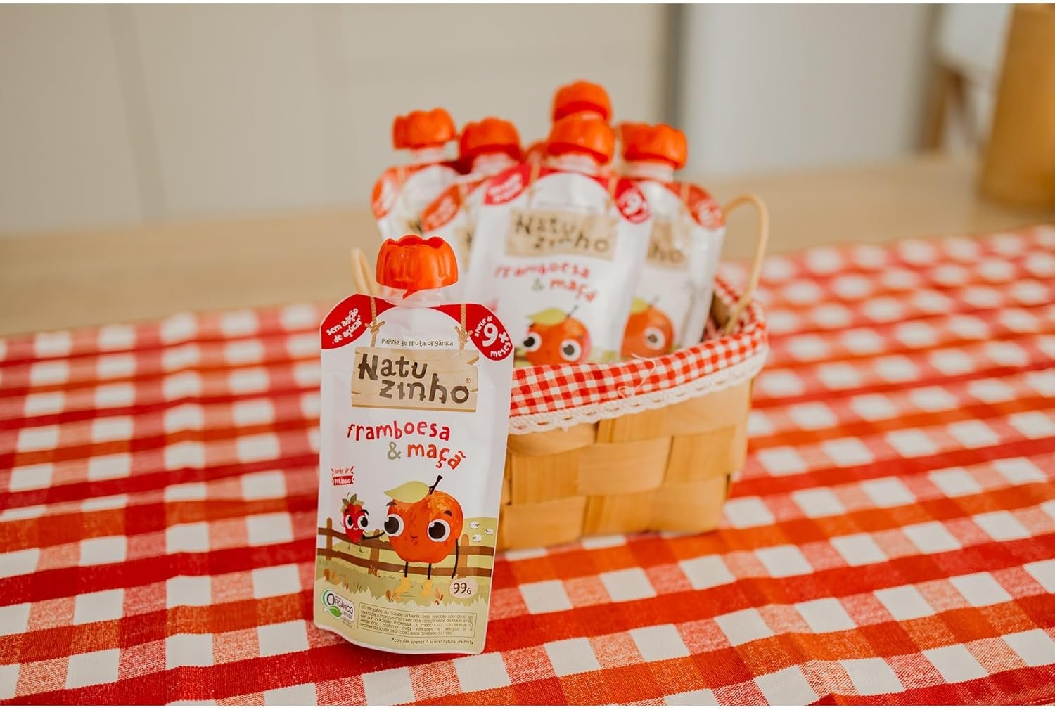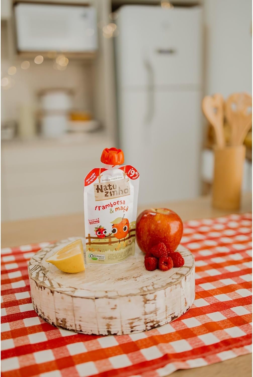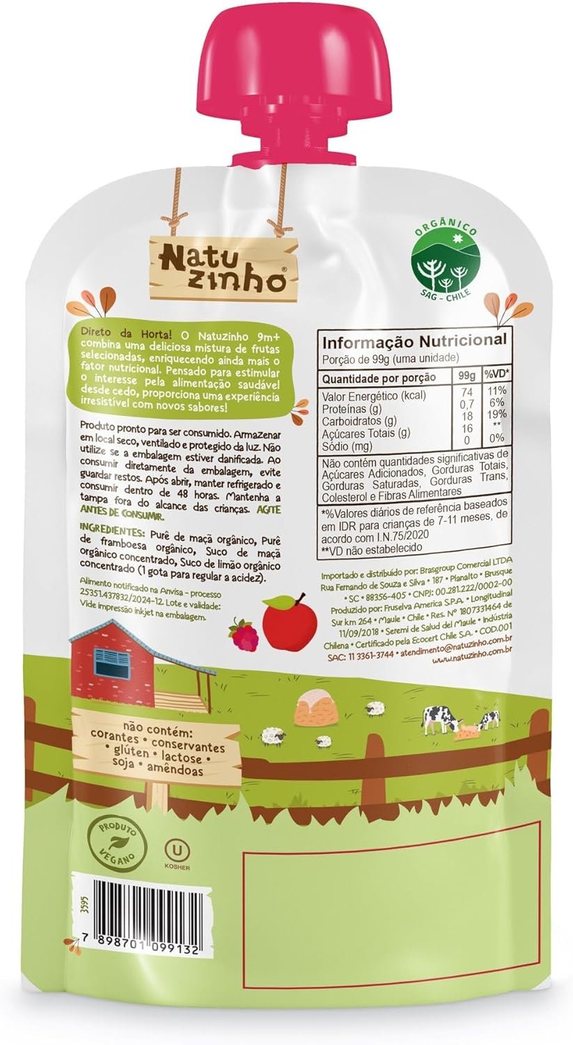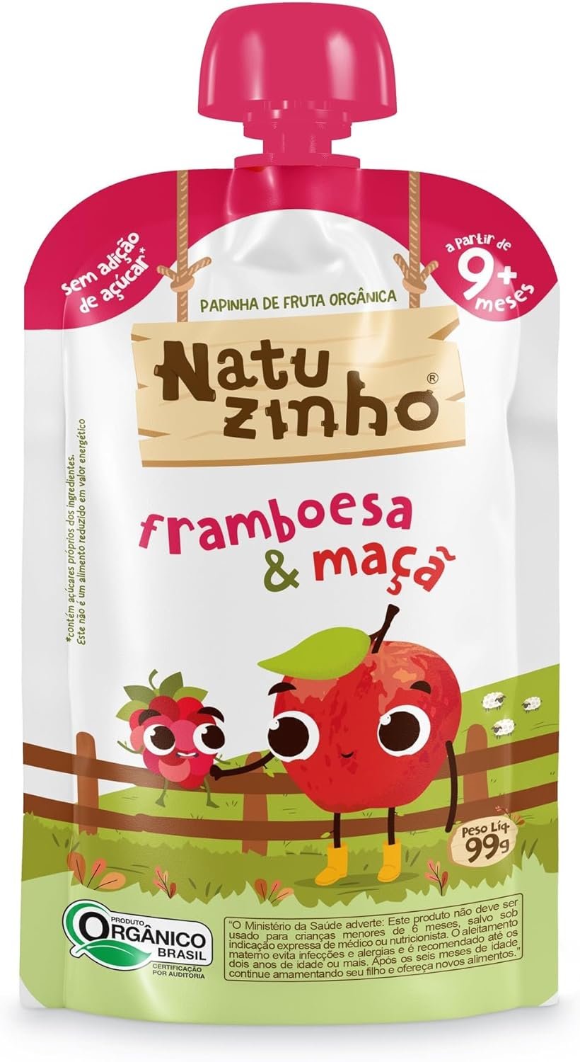 Natuzinho, Papinha Orgânica para Bebê, Sabor Framboesa e Maçã, Sem Açúcar, Aditivos ou Conservantes, Estimula o Paladar, 99g