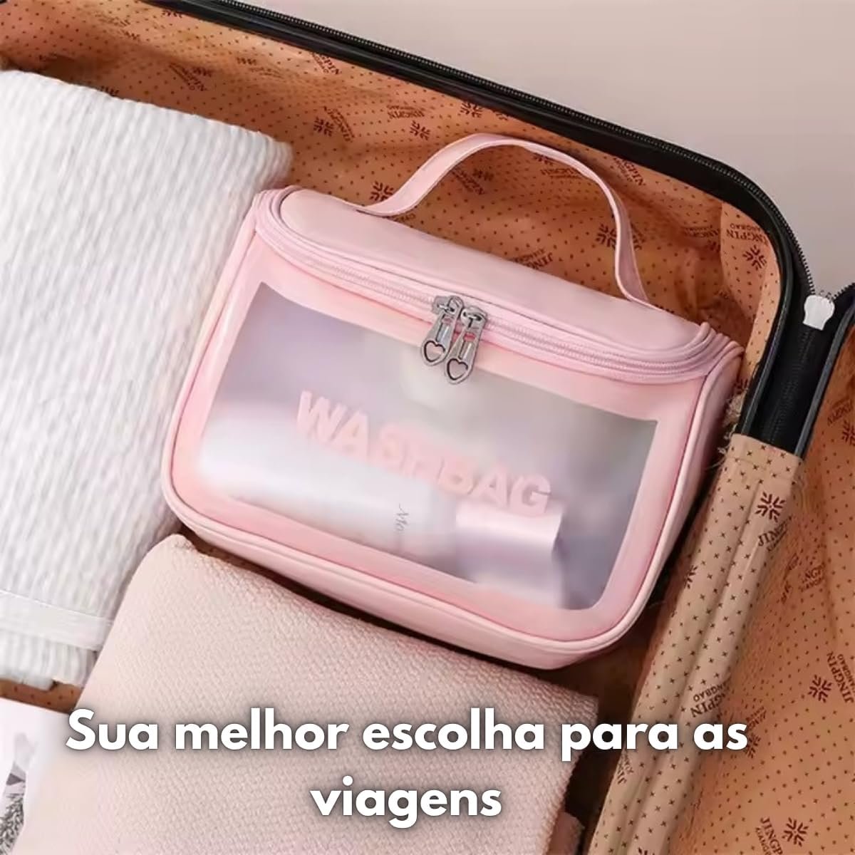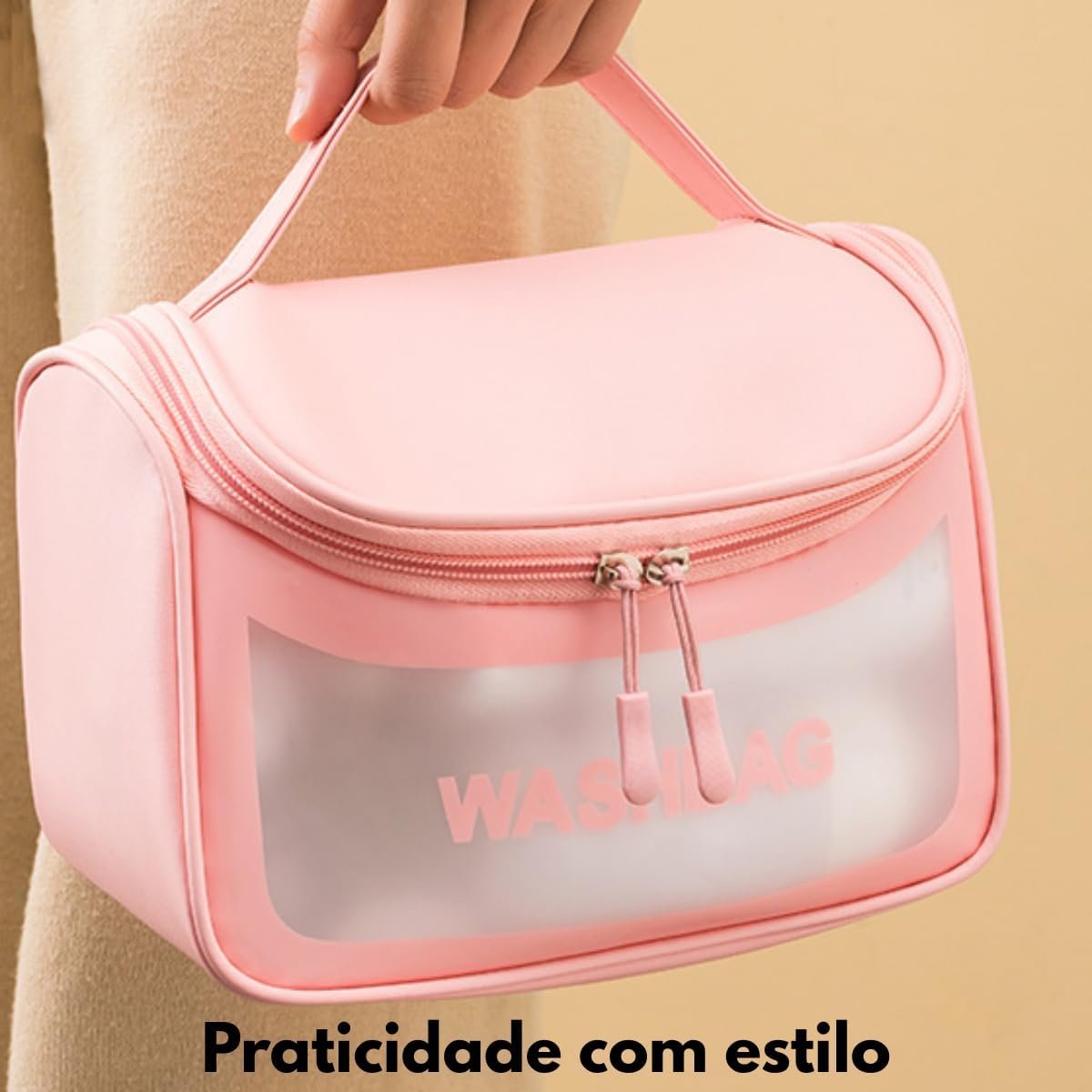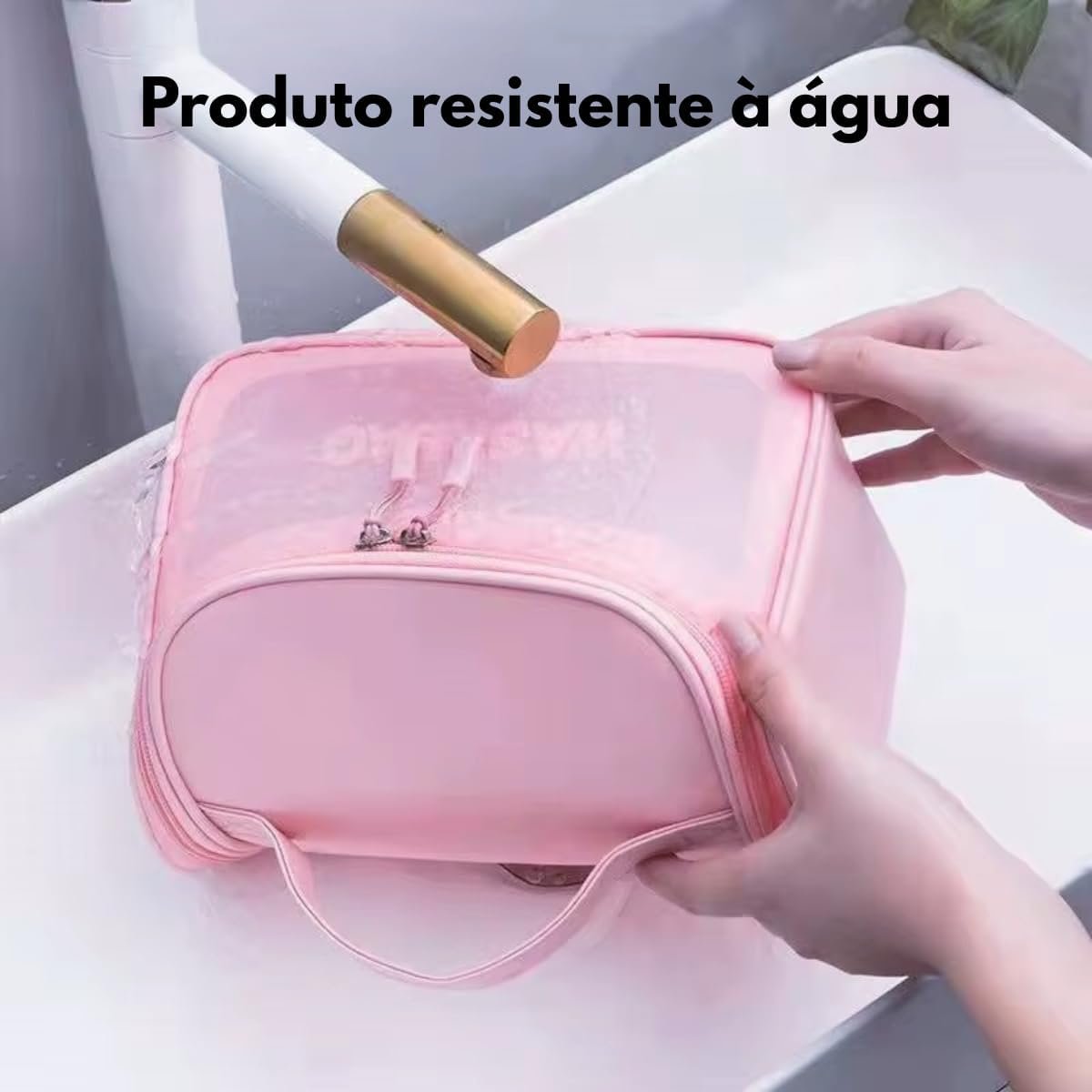 Necessaire Feminina Transparente Viagem Bolsa Ideal para Cosméticos Maquiagem Higiene Pessoal Fechamento com Zíper Fácil Acesso Design Moderno Funcional Impermeável (Preto)