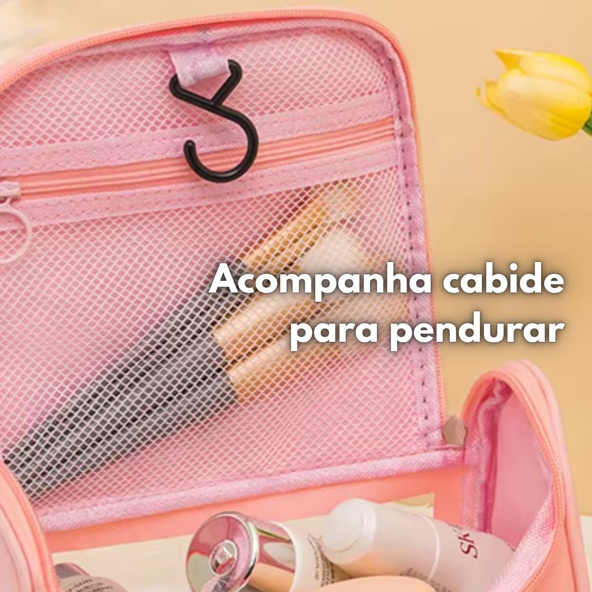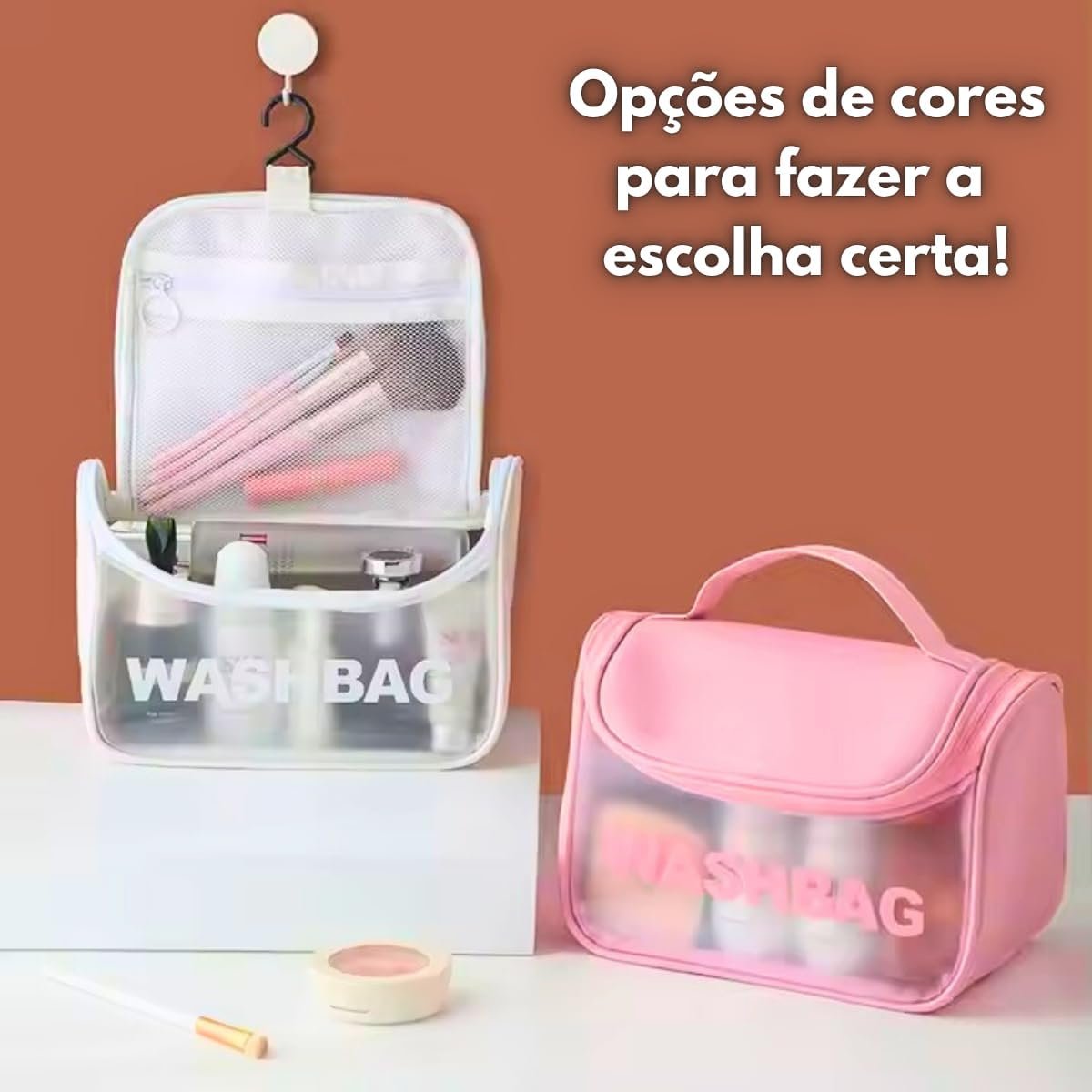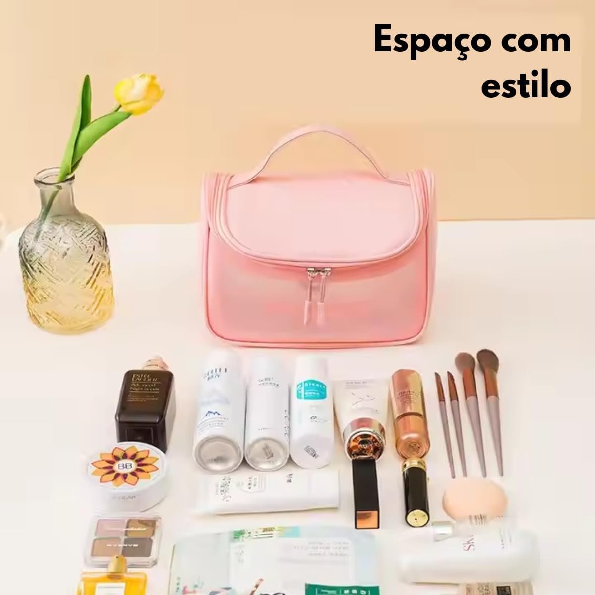 Necessaire Feminina Transparente Viagem Bolsa Ideal para Cosméticos Maquiagem Higiene Pessoal Fechamento com Zíper Fácil Acesso Design Moderno Funcional Impermeável (Preto)