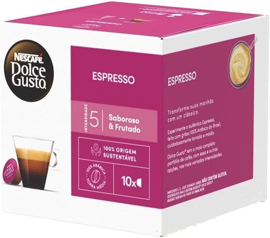 Experimente a intensidade e o sabor incomparáveis do Nescafe Dolce Gusto Espresso com estas 10 cápsulas de café premium. Desfrute de um café encorpado e aromático a qualquer hora do dia, com a praticidade e qualidade que só a Dolce Gusto oferece. Aproveite cada momento com o verdadeiro prazer de uma xícara de café perfeita!