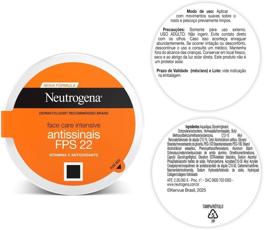 Neutrogena Hidratante Facial Antissinais Face Care Intensive FPS 22, 100g