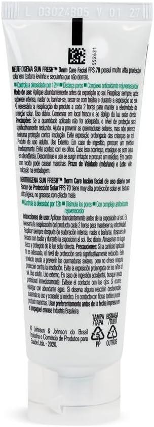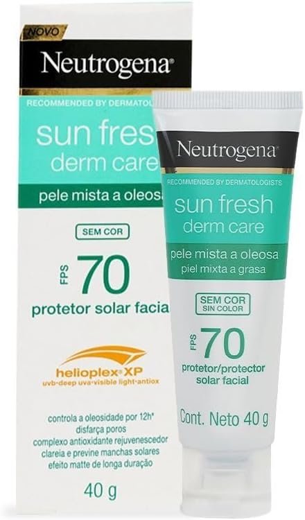O Protetor Solar Facial Neutrogena Sun Fresh Derm Care foi especialmente desenvolvido para peles oleosas. Sua fórmula leve e oil-free mantém sua pele protegida dos raios solares, enquanto controla o brilho indesejado. Com FPS 70, garante alta proteção contra os raios UVA e UVB. Além disso, sua textura sem cor proporciona um acabamento natural e suave. Aproveite o melhor do sol sem descuidar da sua pele!
