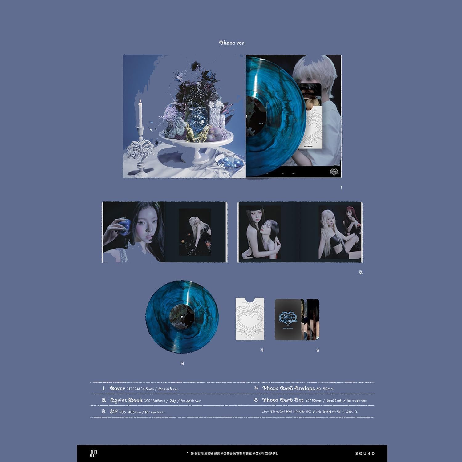 Descrição: Leve para casa o álbum completo do NMIXX, “Blue Valentine”, na versão LP Chaos, acompanhado de um livro de letras, um conjunto de cartões de fotos e um presente especial. Aumente sua coleção de música com esse pacote exclusivo!