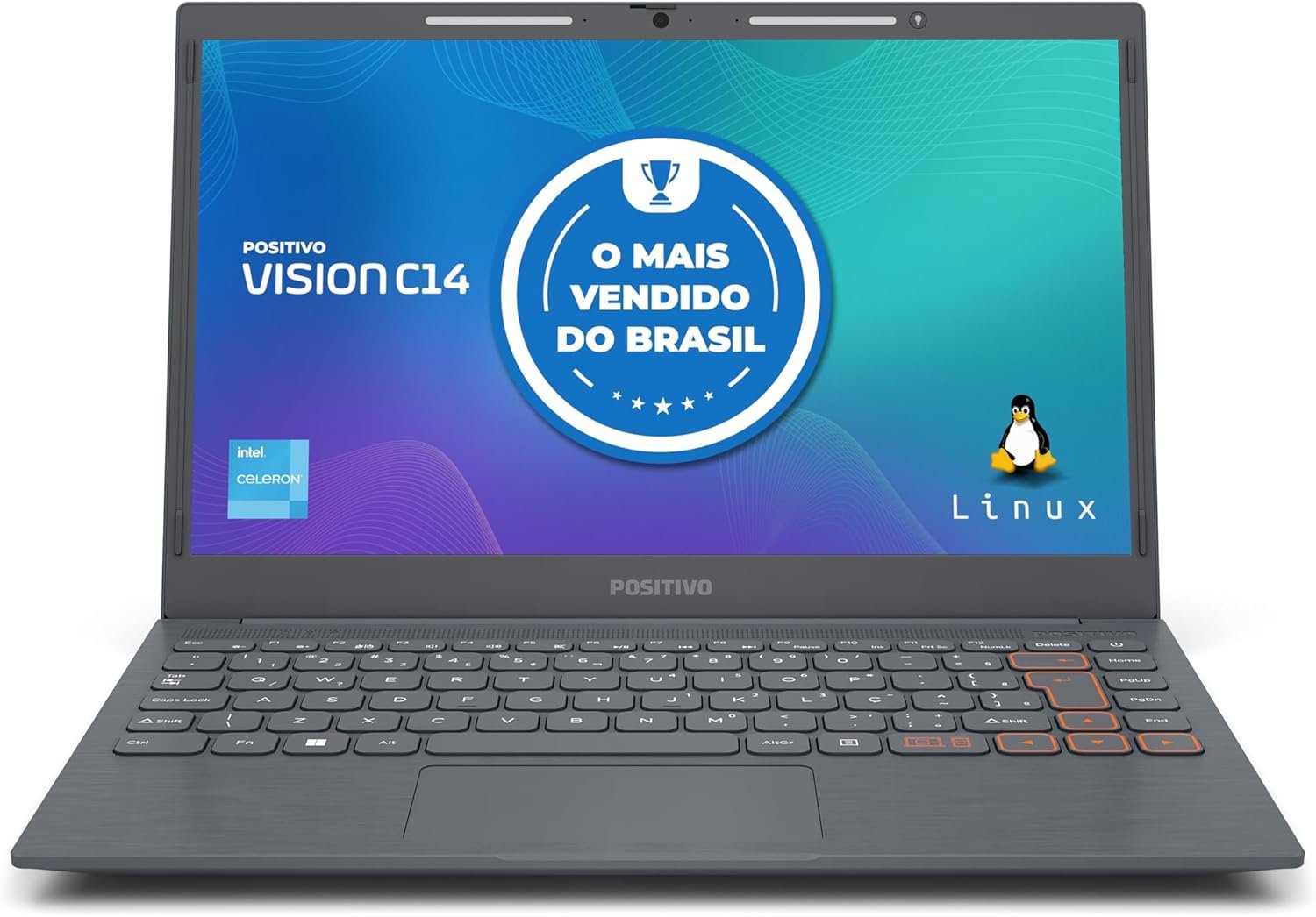 Notebook Positivo Vision C14 Lumina BAR Celeron, 8GB 128GB eMMC, Tela 14 Polegadas HD Antirreflexo, Linux, Tecla Link – Cinza