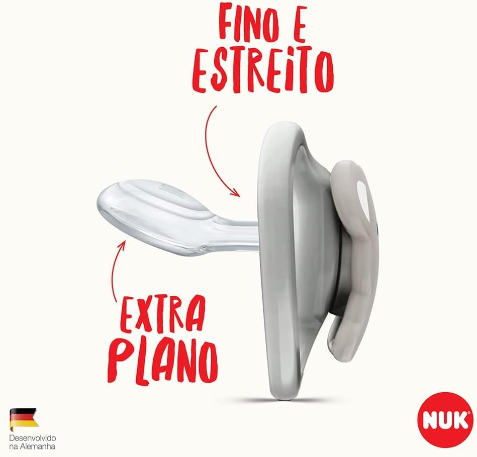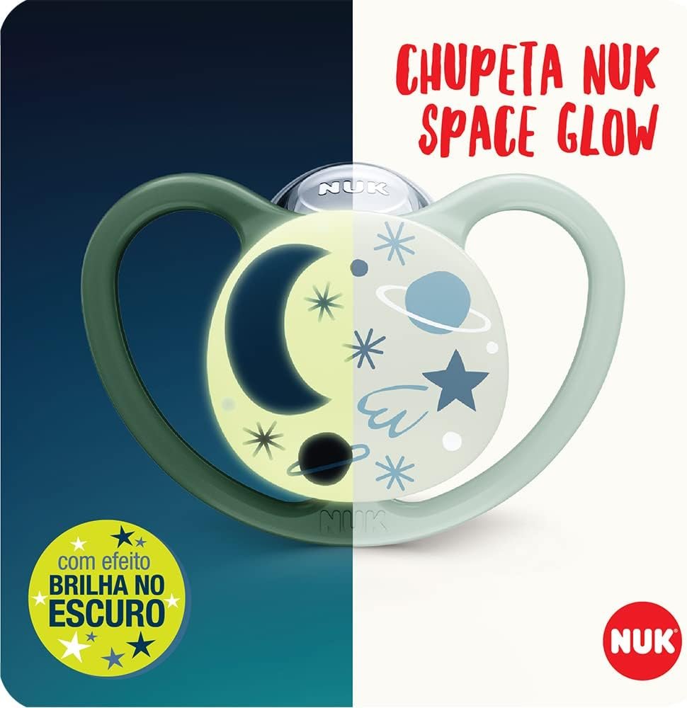 As chupetas NUK Space são ideais para bebês a partir de 18 meses, proporcionando conforto e segurança durante o dia e noite.