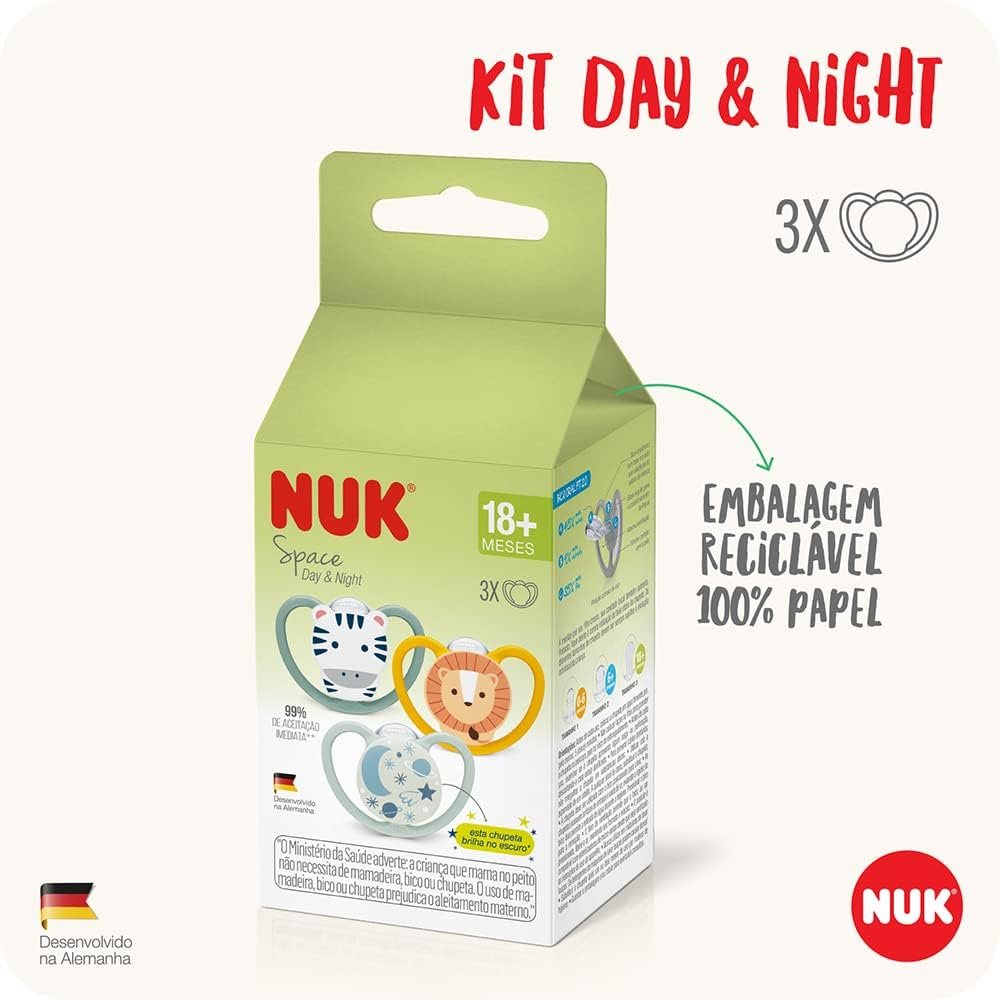 NUK Kit com 3 Chupetas Space 18+ Meses – Dia e Noite