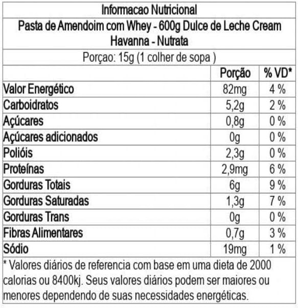Nutrata Pasta de Amendoim Sabor Dulce de Leche Havanna CREAM 600g