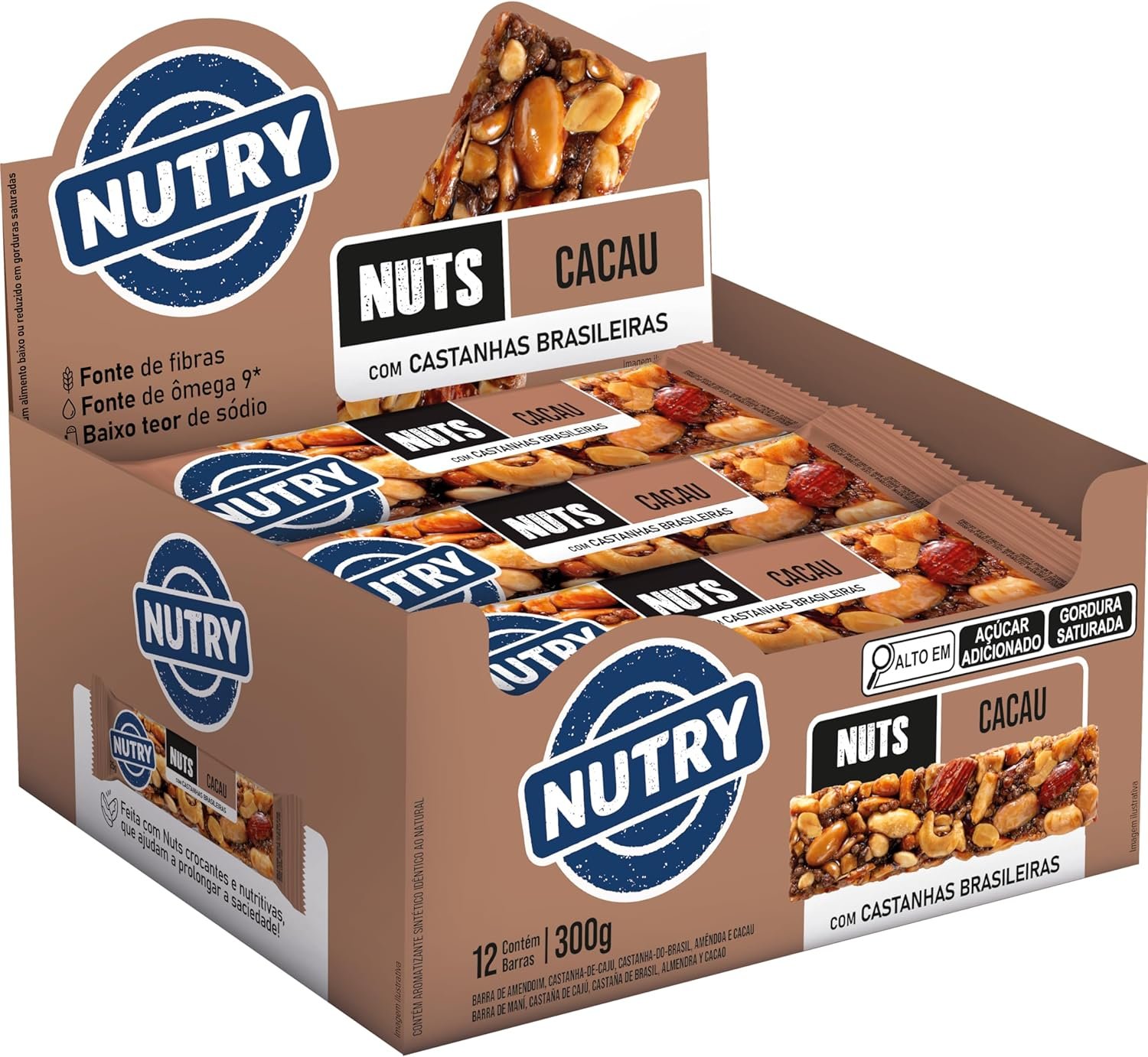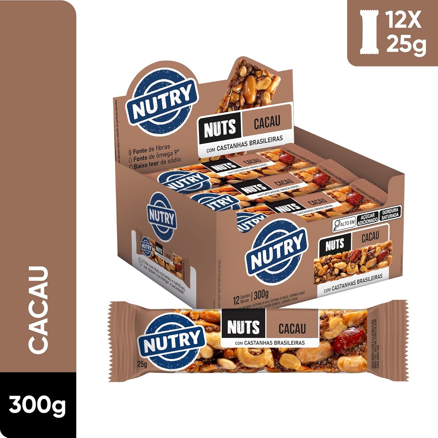 Nutry Barra de Castanhas Nuts Cacau 25g – Display Com 12 Unidades – Com Castanhas Brasileiras, Amêndoas e Chocolate