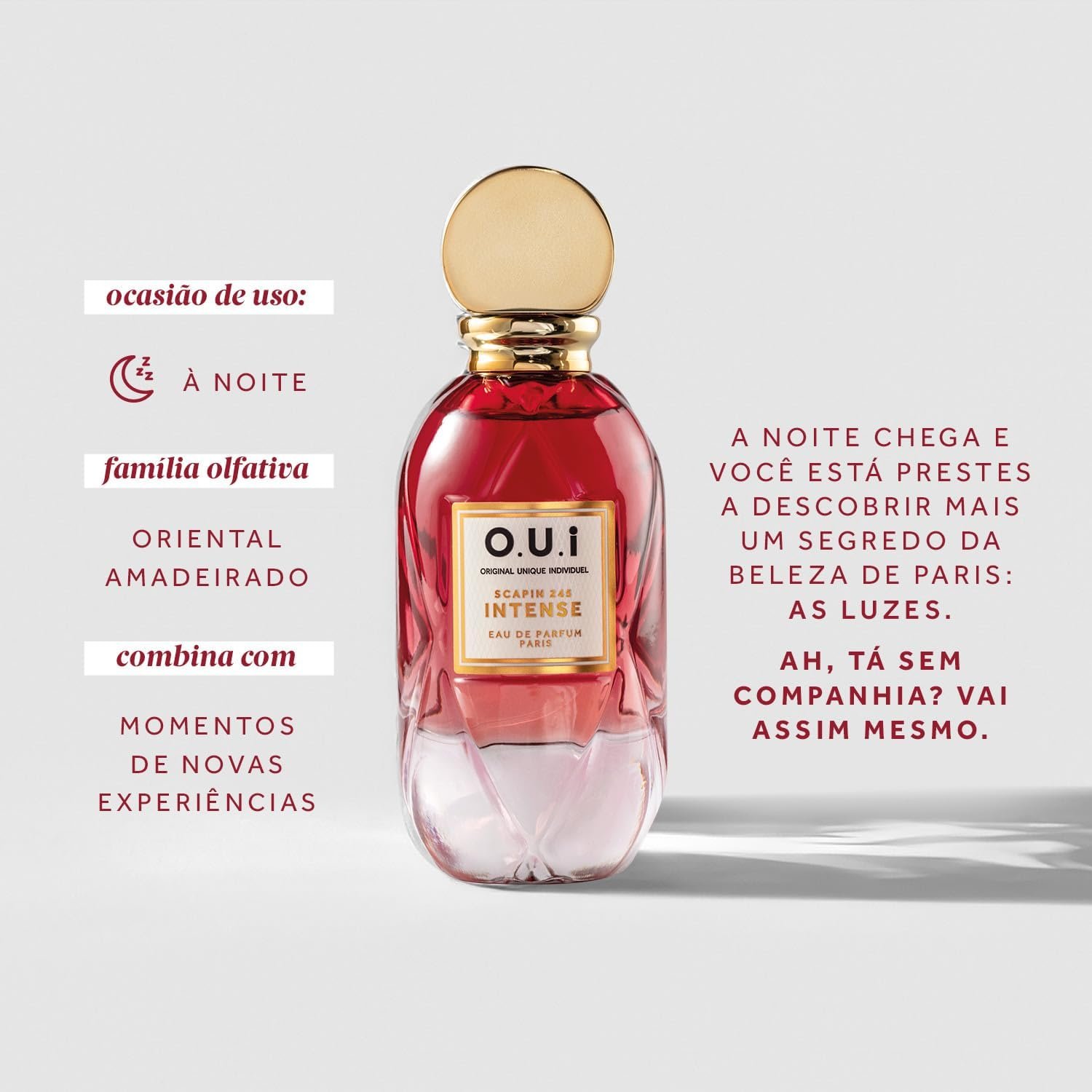 Descubra a aura irresistível do O.U.i Scapin 245 Intense Eau De Parfum 75ml. Uma fragrância envolvente que combina elegância e sofisticação em cada borrifada. Sinta-se confiante e marcante com notas intensas que duram o dia todo. Experimente o poder da sedução com este perfume exclusivo.