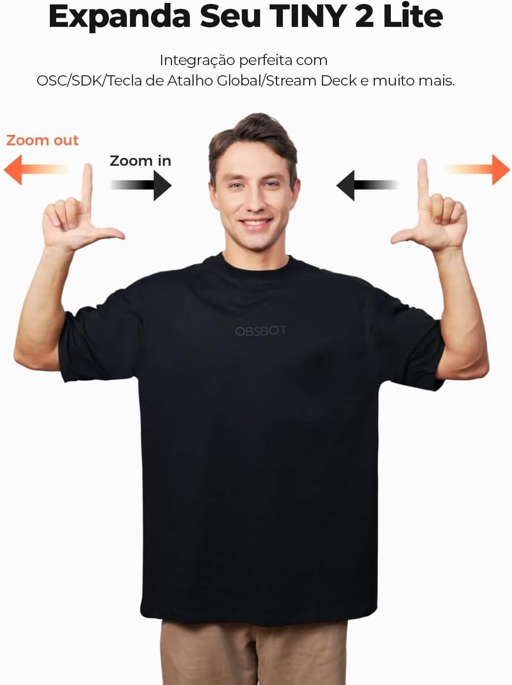 OBSBOT Tiny 2 Lite 4K Webcam PC, câmera de streaming PTZ com rastreamento IA e sensor 1/2″, controle gestos HDR microfones webcam computador mesa laptop reunião videochamadas 4K@30fps / 1080@60fps