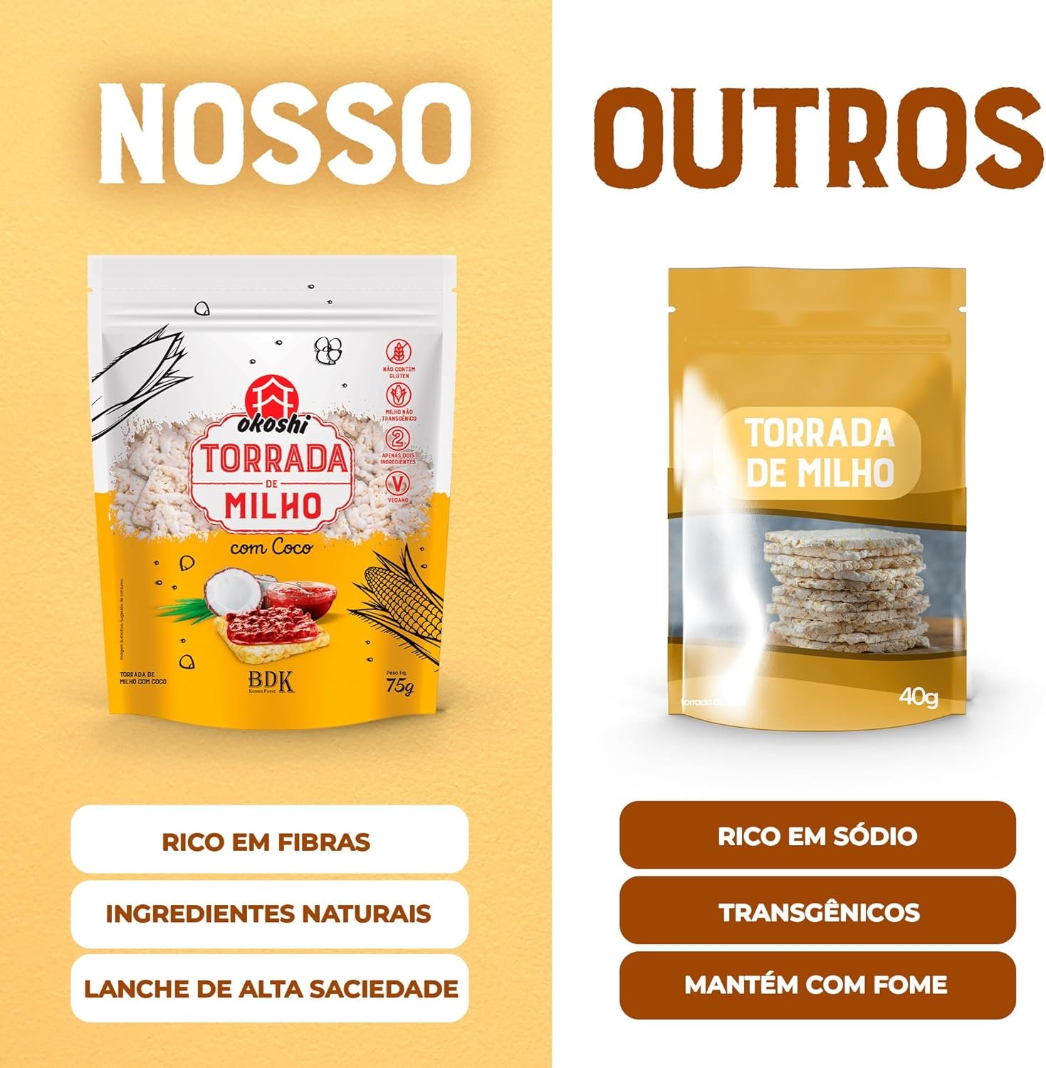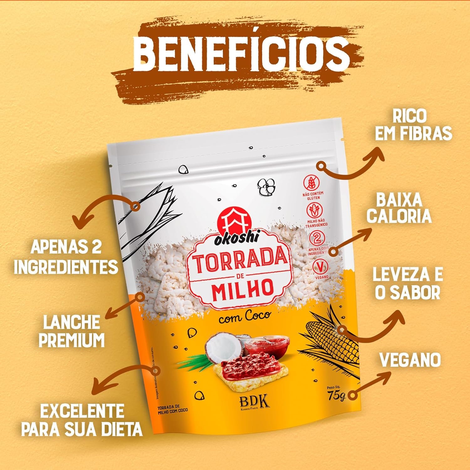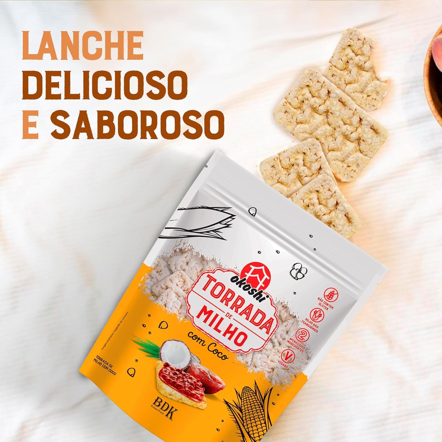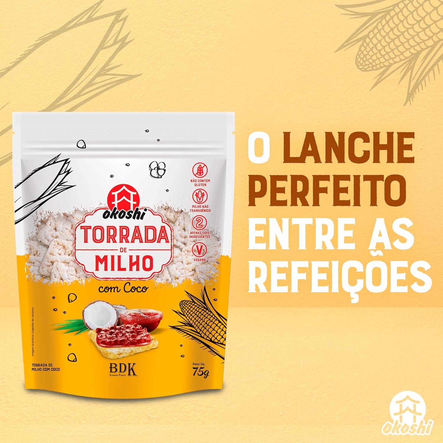 OKOSHI – Torrada de Milho com Coco – Snacks Saudáveis de Baixa Caloria, Lanches Fit para a Dieta – Vegano, Sem Glúten, Sem Lactose, Sem Gordura Trans, Kosher – 75gOKOSHI – Torrada de Milho com Coco – Snacks Saudáveis de Baixa Caloria, Lanches Fit para a Dieta – Vegano, Sem Glúten, Sem Lactose, Sem Gordura Trans, Kosher – 75g