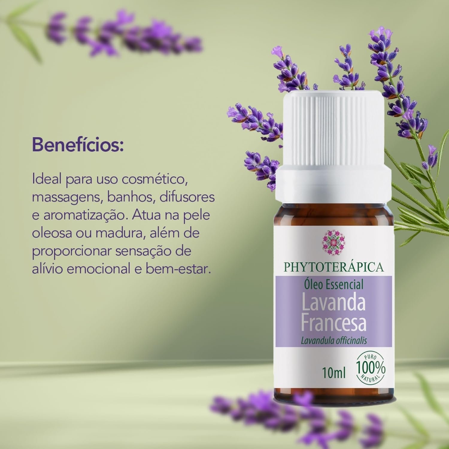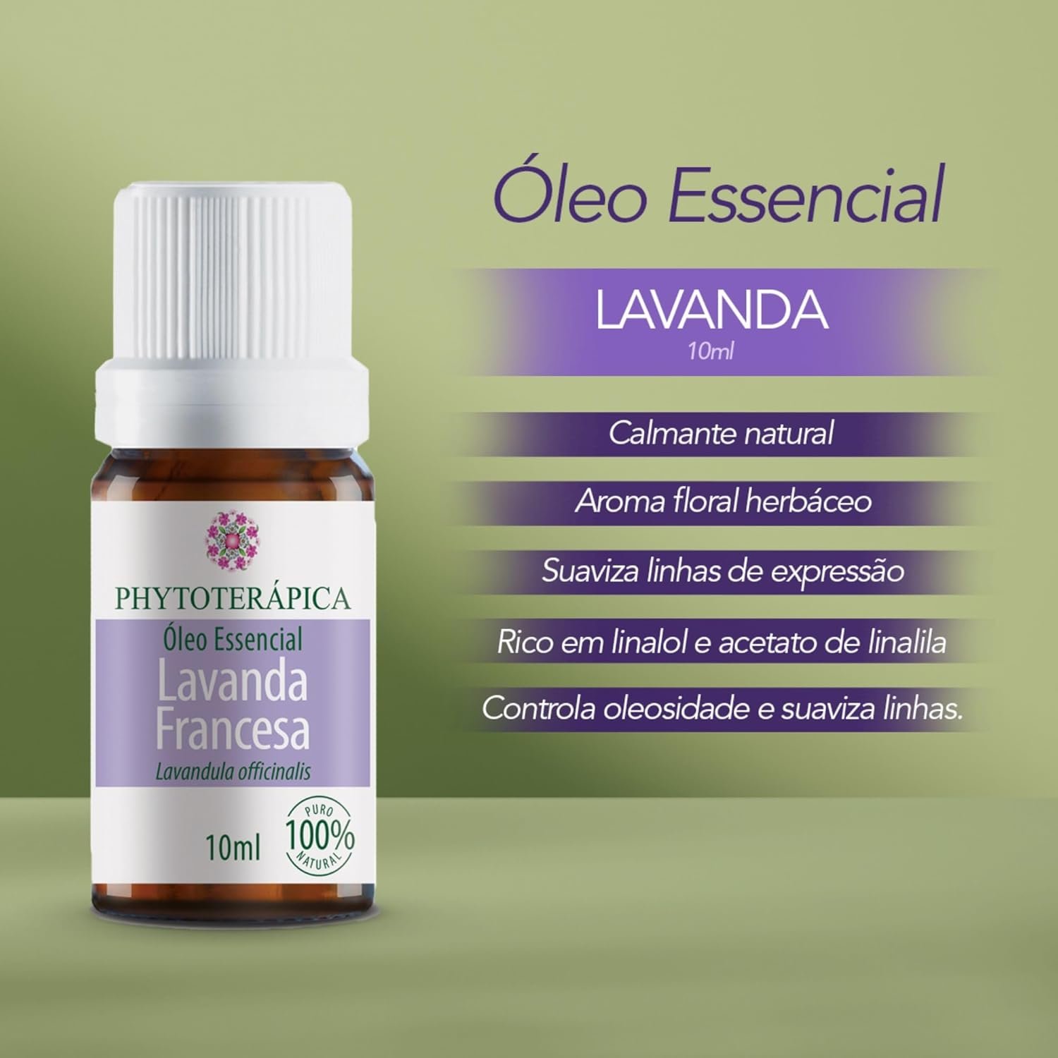 Óleo Essencial de Lavanda Francesa 10ml – Aroma Equilibrante – Fórmula Natural – Vegano – Phytoterápica