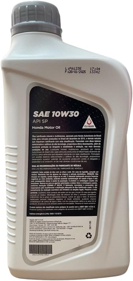 Obtenha o máximo desempenho para o motor do seu veículo com o Óleo/Fluído para Motor Honda 10W30. Formulado especialmente para motores Honda, este produto garante uma lubrificação eficaz, protegendo o motor contra o desgaste e prolongando sua vida útil. Com o Óleo/Fluído para Motor Honda 10W30, você terá uma condução suave, sem atritos prejudiciais, mantendo seu motor em perfeitas condições. Aproveite a qualidade e confiabilidade que só um produto desenvolvido para atender às necessidades específicas da sua Honda pode oferecer.